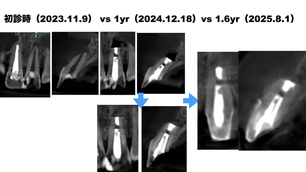 支台築造と歯根端切除術を同時に行う1つの方法とその”臨床的”欠点〜#9 Core build up with Fiber post, Apicoectomy 1回法 1.6yr recall