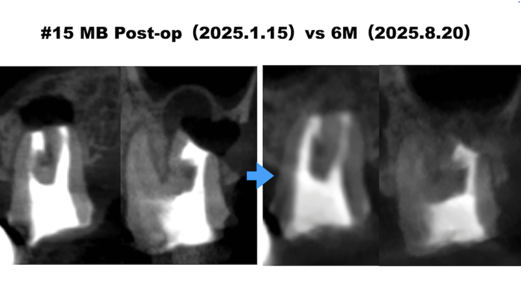 1年半ほど前に地元の歯科医院で治療を続けてきたが良くならず、今も咬合痛がある。痛みなく、普通に食事ができるようになりたい。。。〜#15 MB+DB Apicoectomyとその6M recall