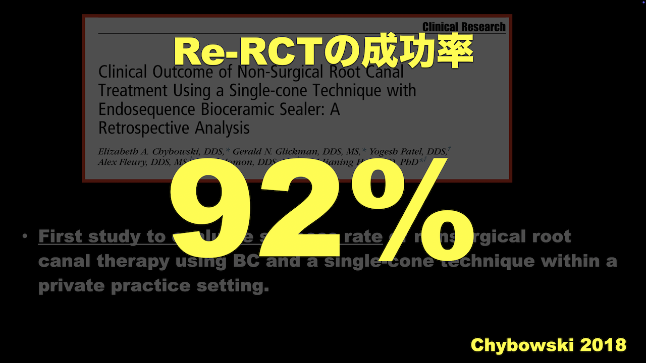 まず成功率であるが、再根管治療の成功率は最近の文献だと92%である。