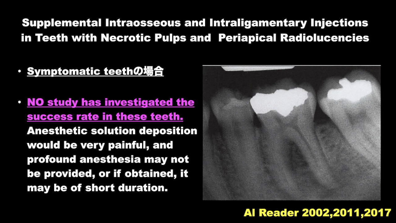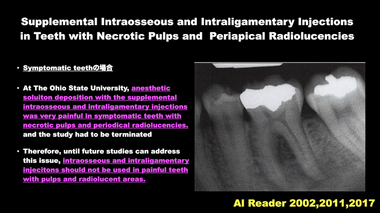 今回は、壊死歯髄や既根管治療歯の急発に対する麻酔の方法に関して論じてみたい。