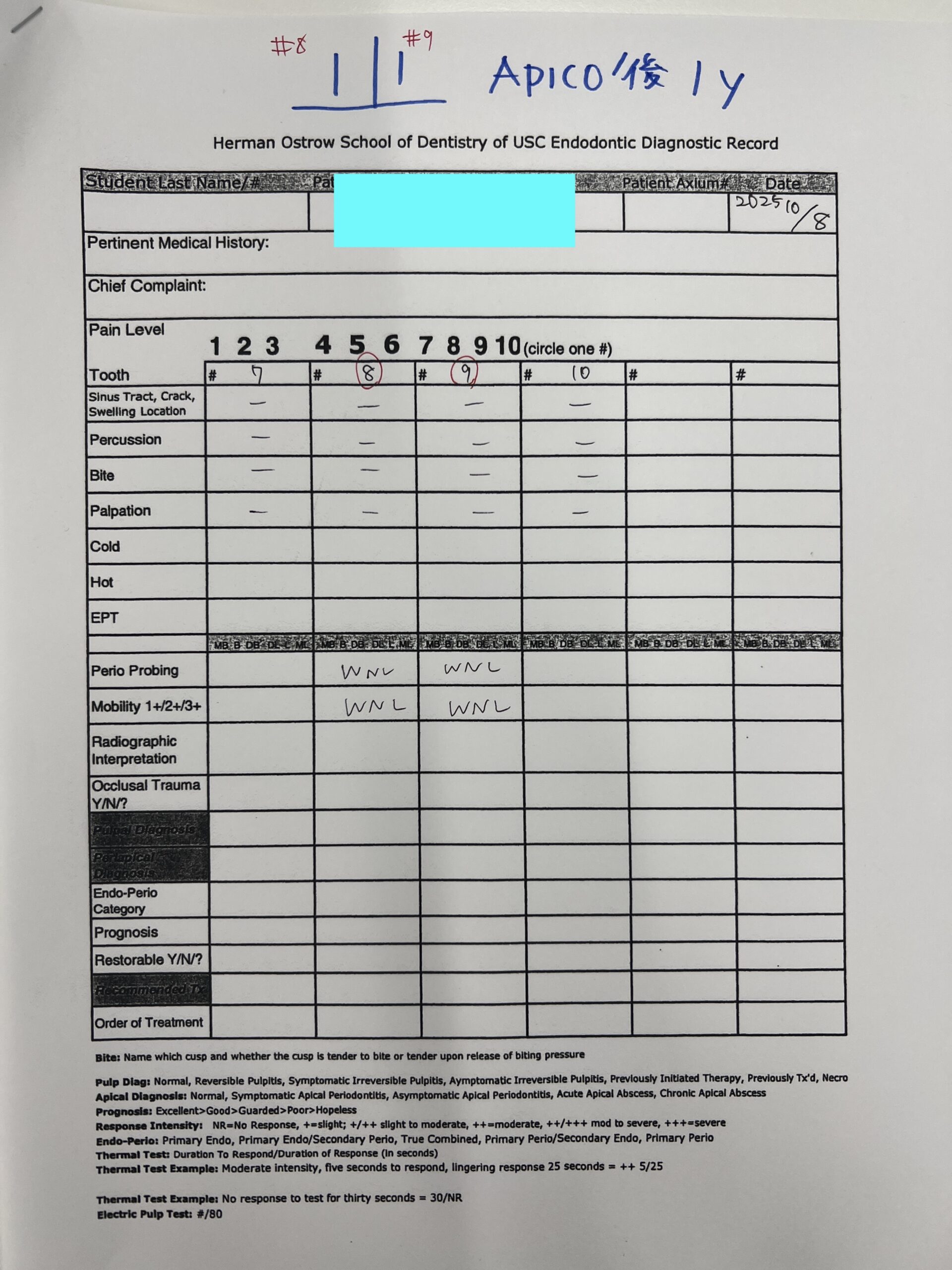 #8,9 Apicoectomy 1yr recall(2025.10.8)