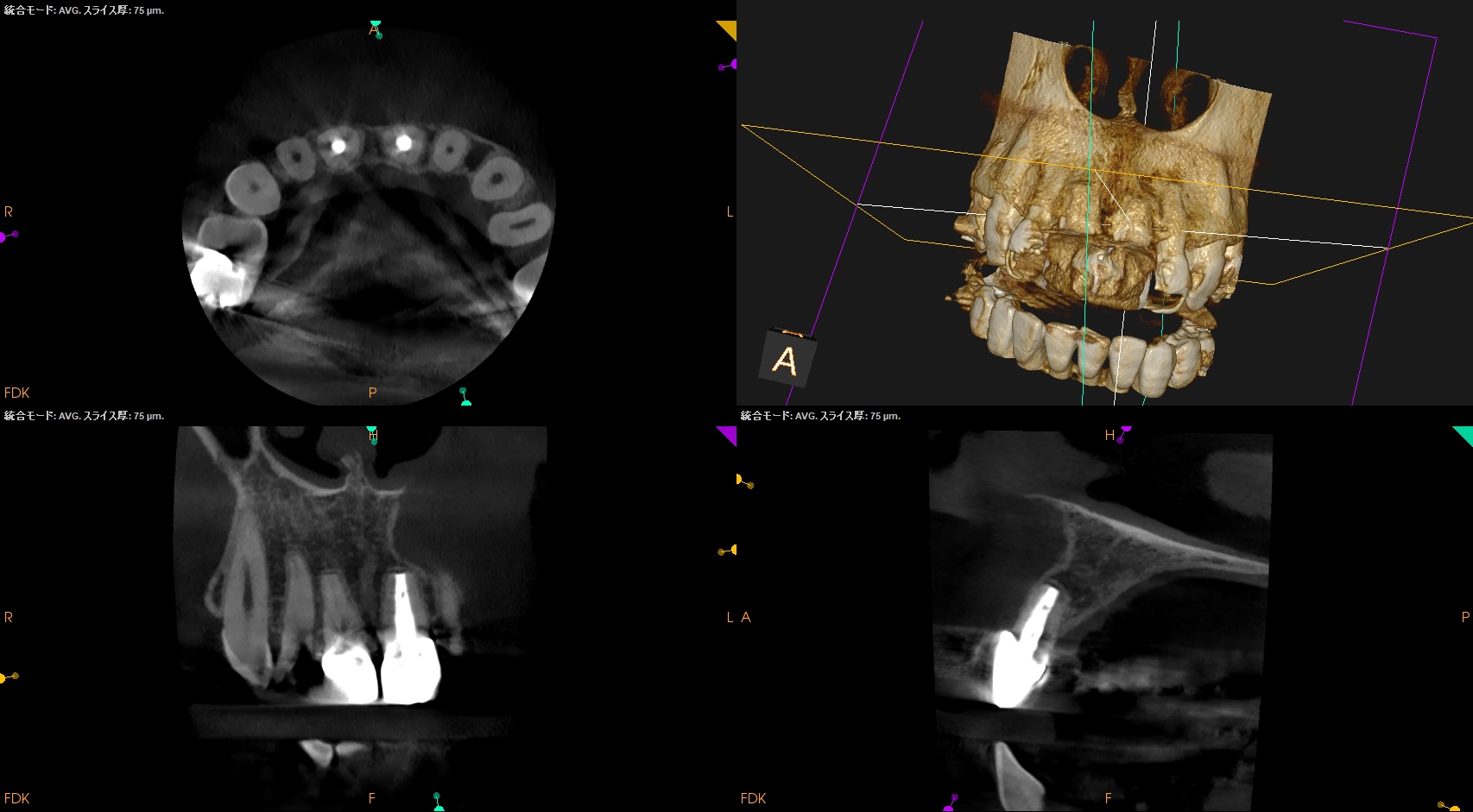 #9は歯根の外部吸収があるため臨在歯を考慮しApexから1mmのみ切断して行ったApicoectomy