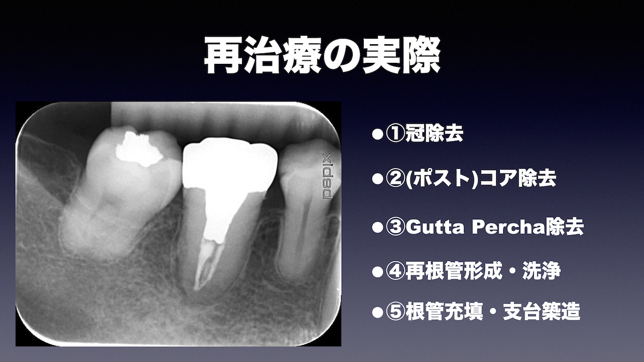 その後が再根管治療の臨床的なテクニックについて講義した。