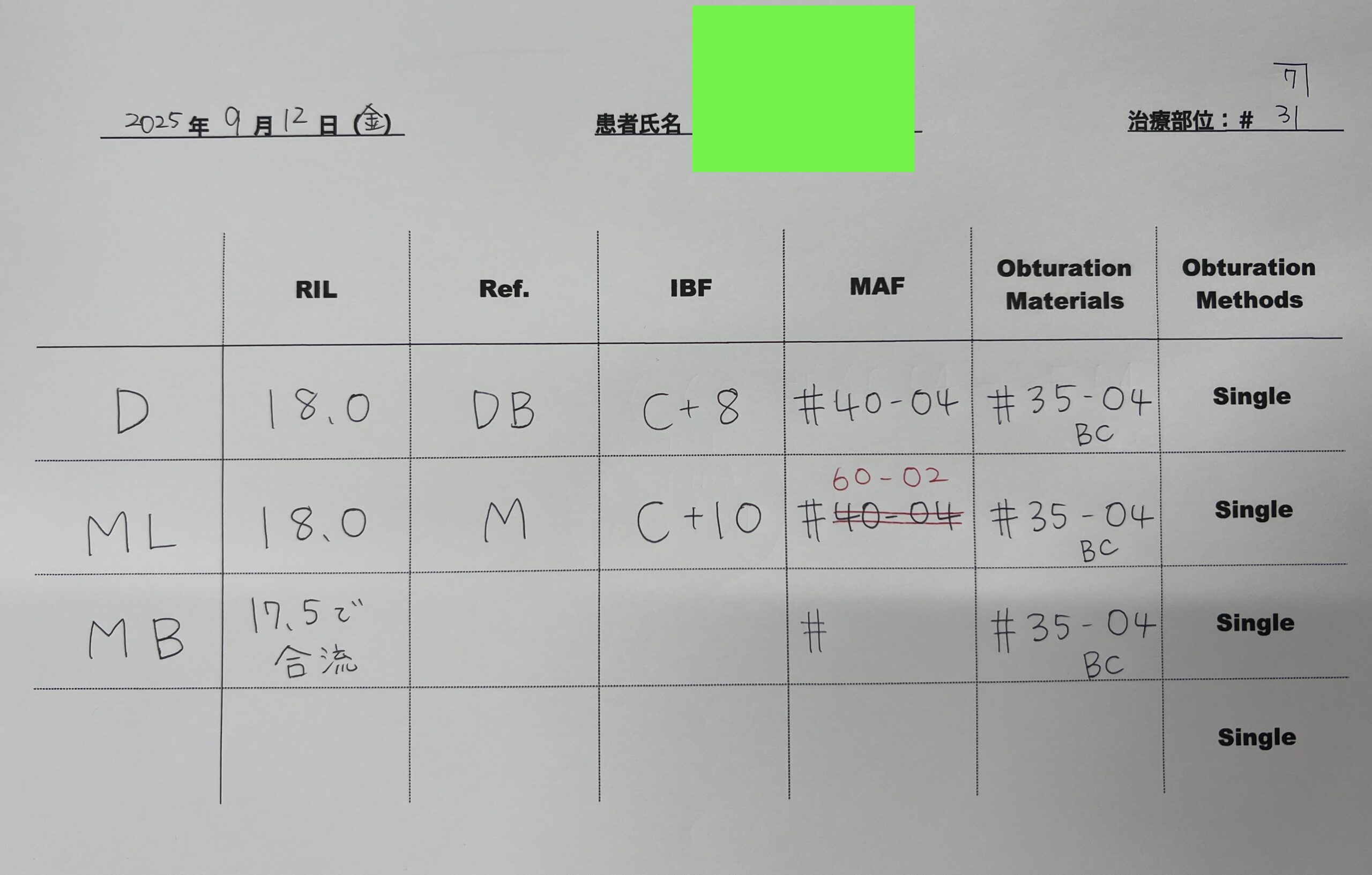 MLをメイン根管にし、MBがそこに合流する形式とした。