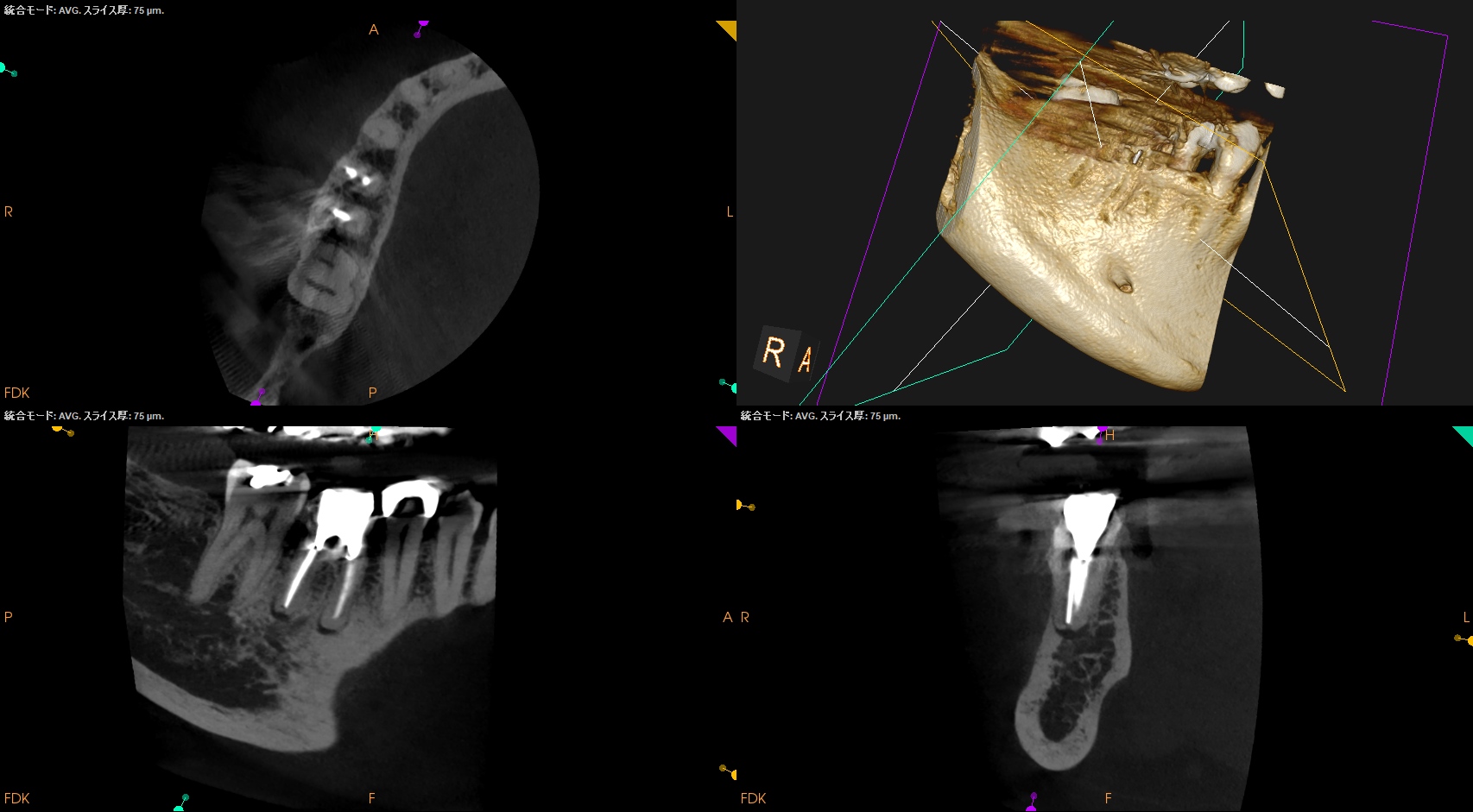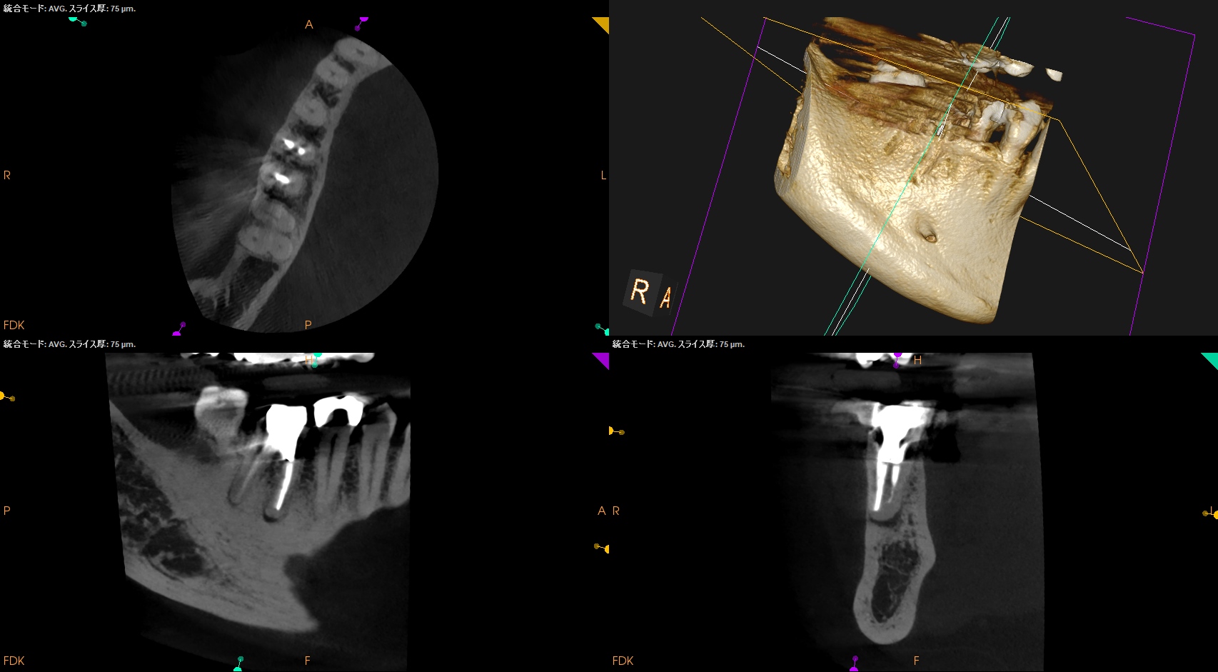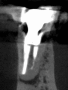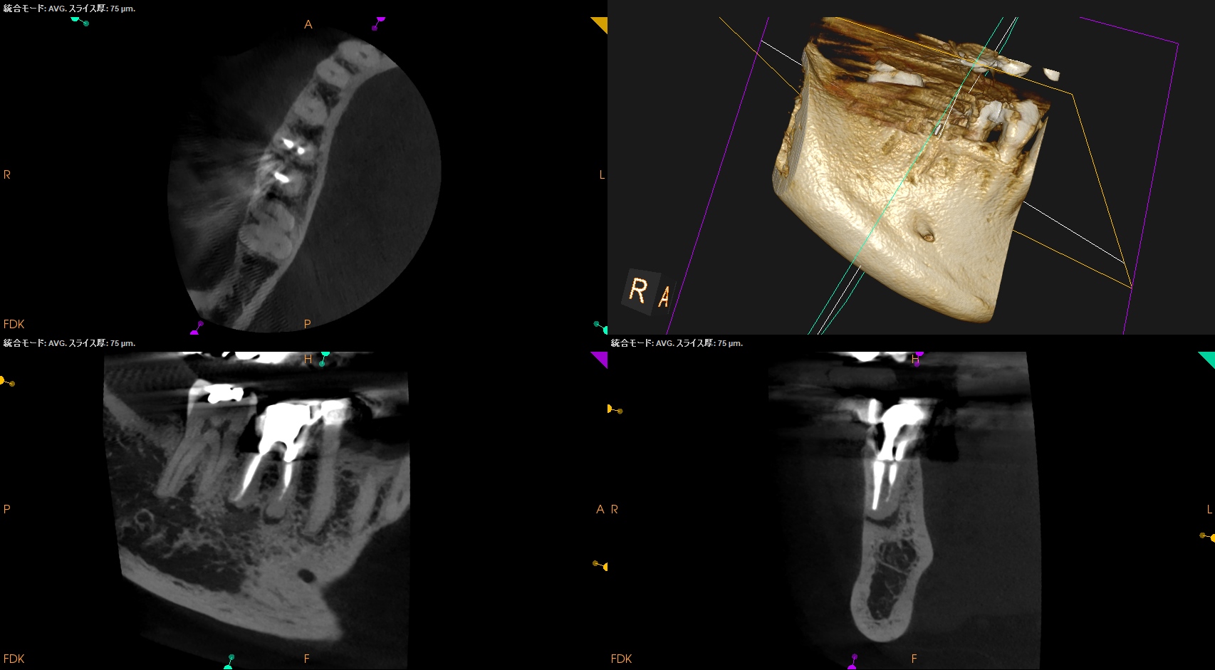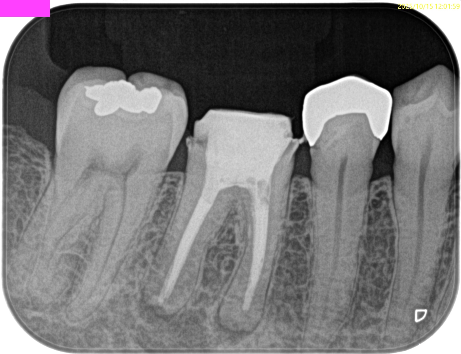 MLは穿通しなかったがこれは細かいGutta Percha Pointが残存したか?破折ファイルの存在か?もしれない。
