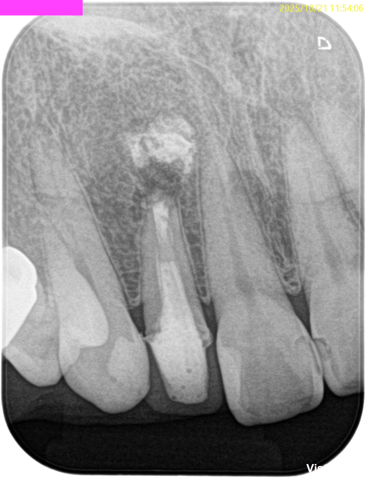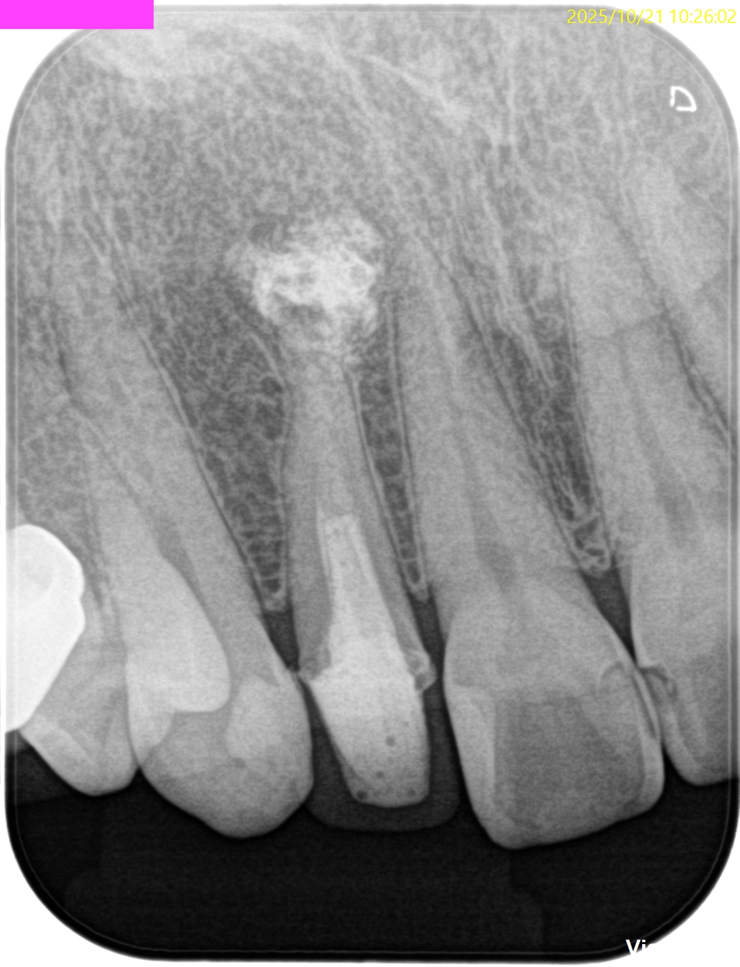 もうすでに大きく形成して大きく根充されている以上、再根管治療に勝ち目はない。