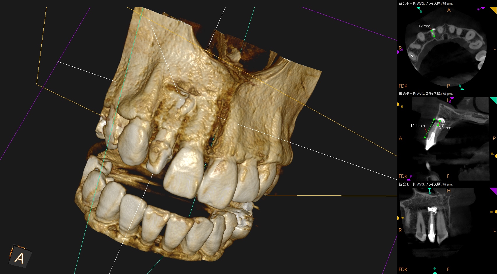 Apexよりも12.5mm下方に#7のApexがあり、そこを3mm切断しようとすれば頬舌的に3.9mの切断が必要だ。