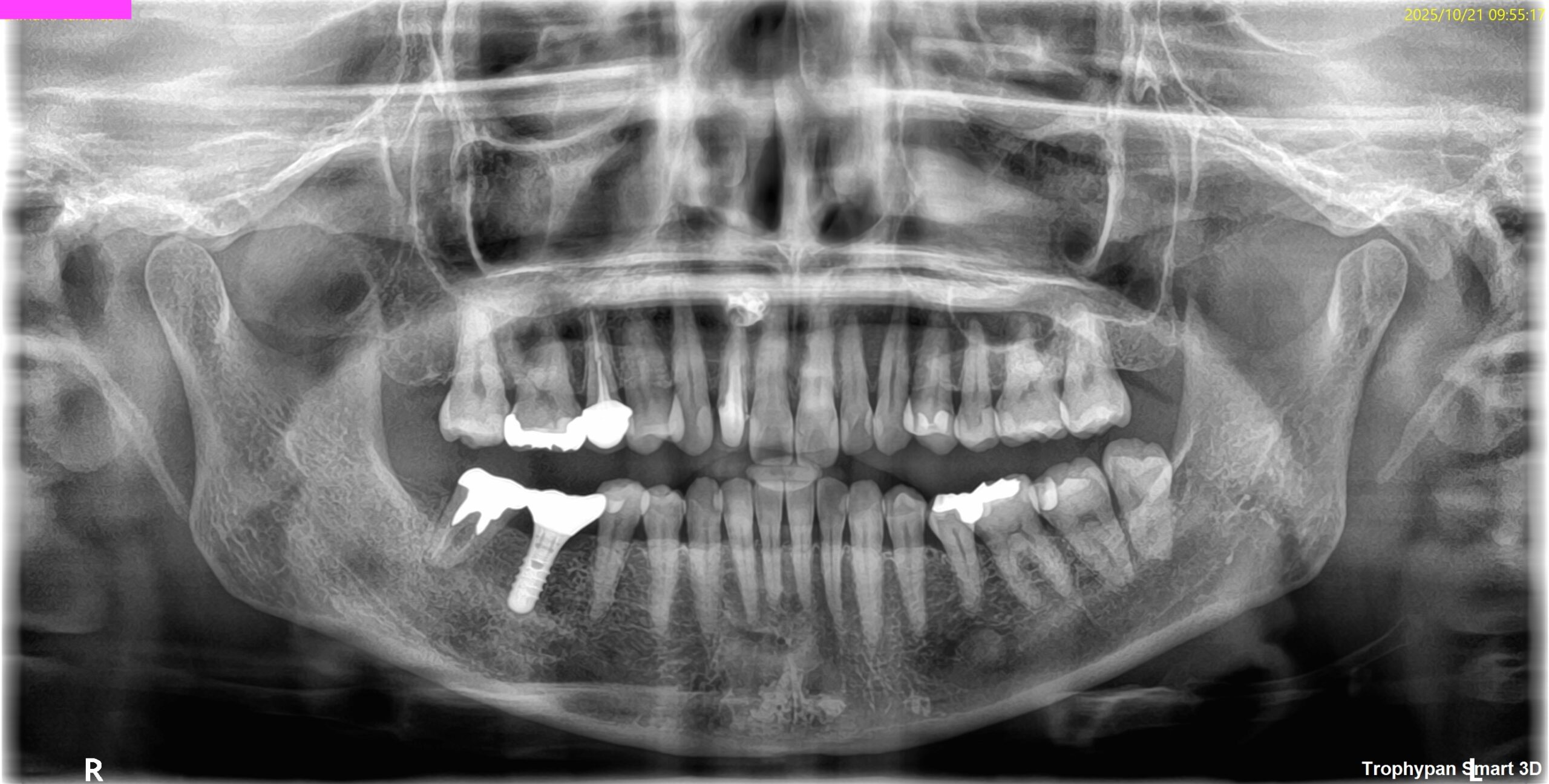 他院で根管治療に3ヶ月通ったが, 治療中から違和感が出てそれが普通になってしまったので違和感がない状態がどんな感じか?わからないが、右下のImplantが落ち着いたので治療したい