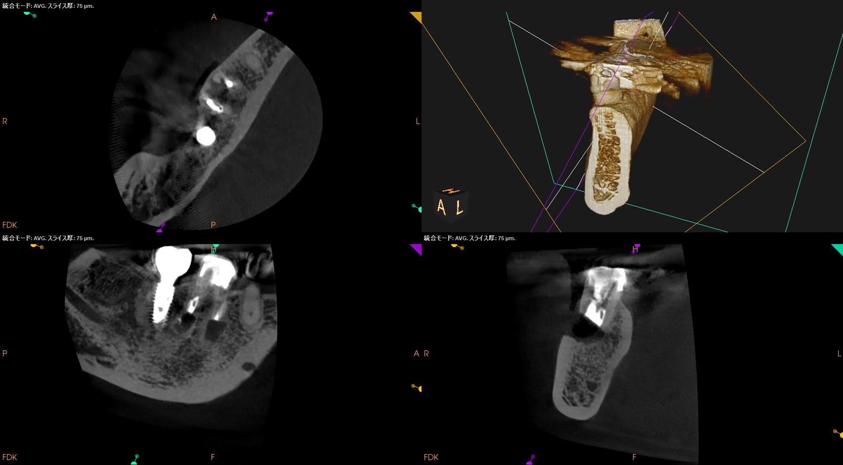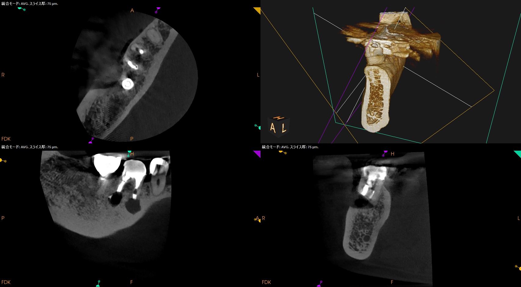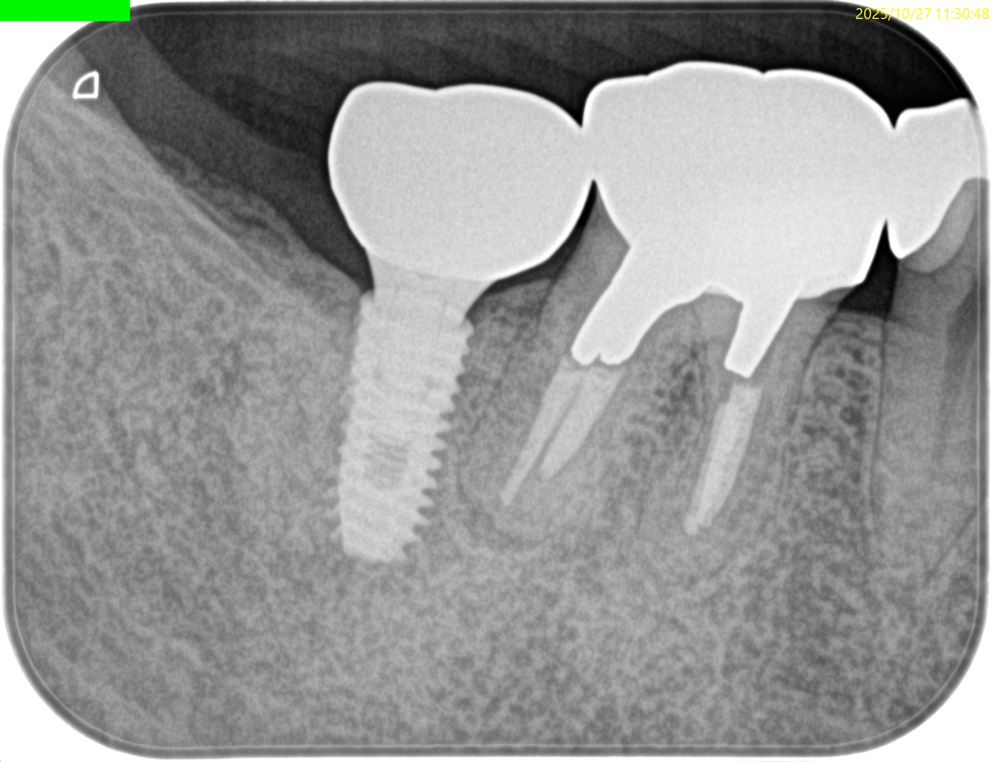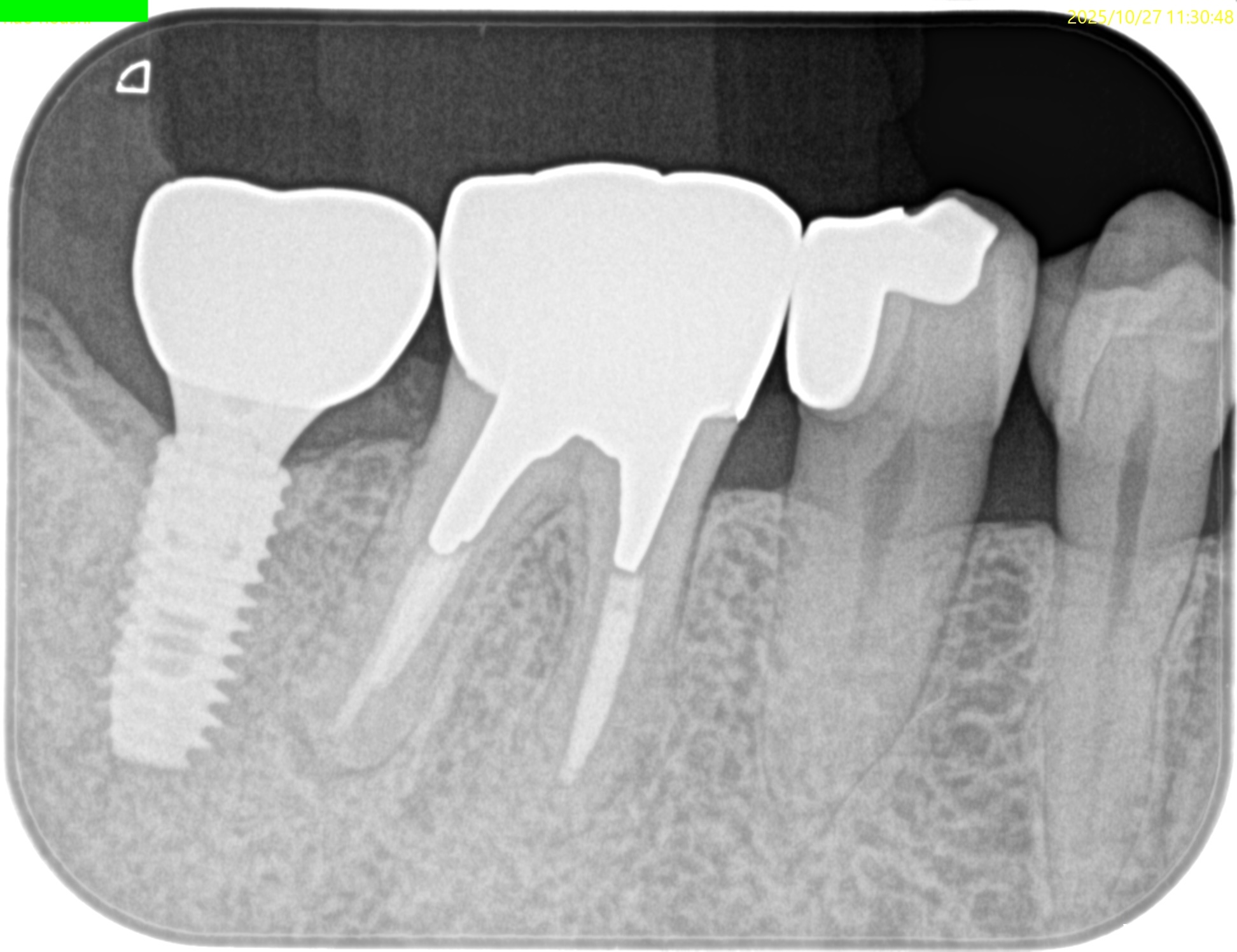 右下のインプラントの隣の歯の根の先に病気があり、このままだとインプラントに影響があると言われた。インプラントはお金がかかったので何とか治療して悪い歯を直してインプラントを守りたい。
