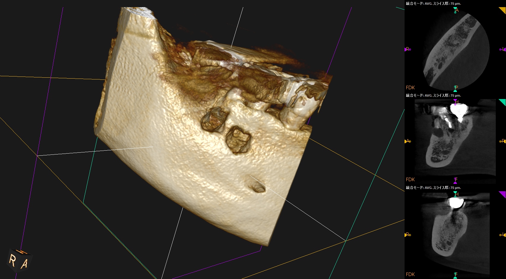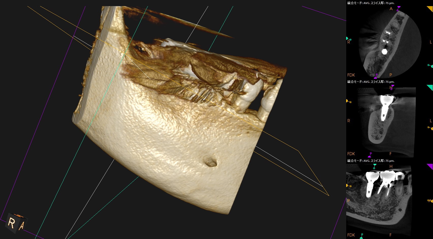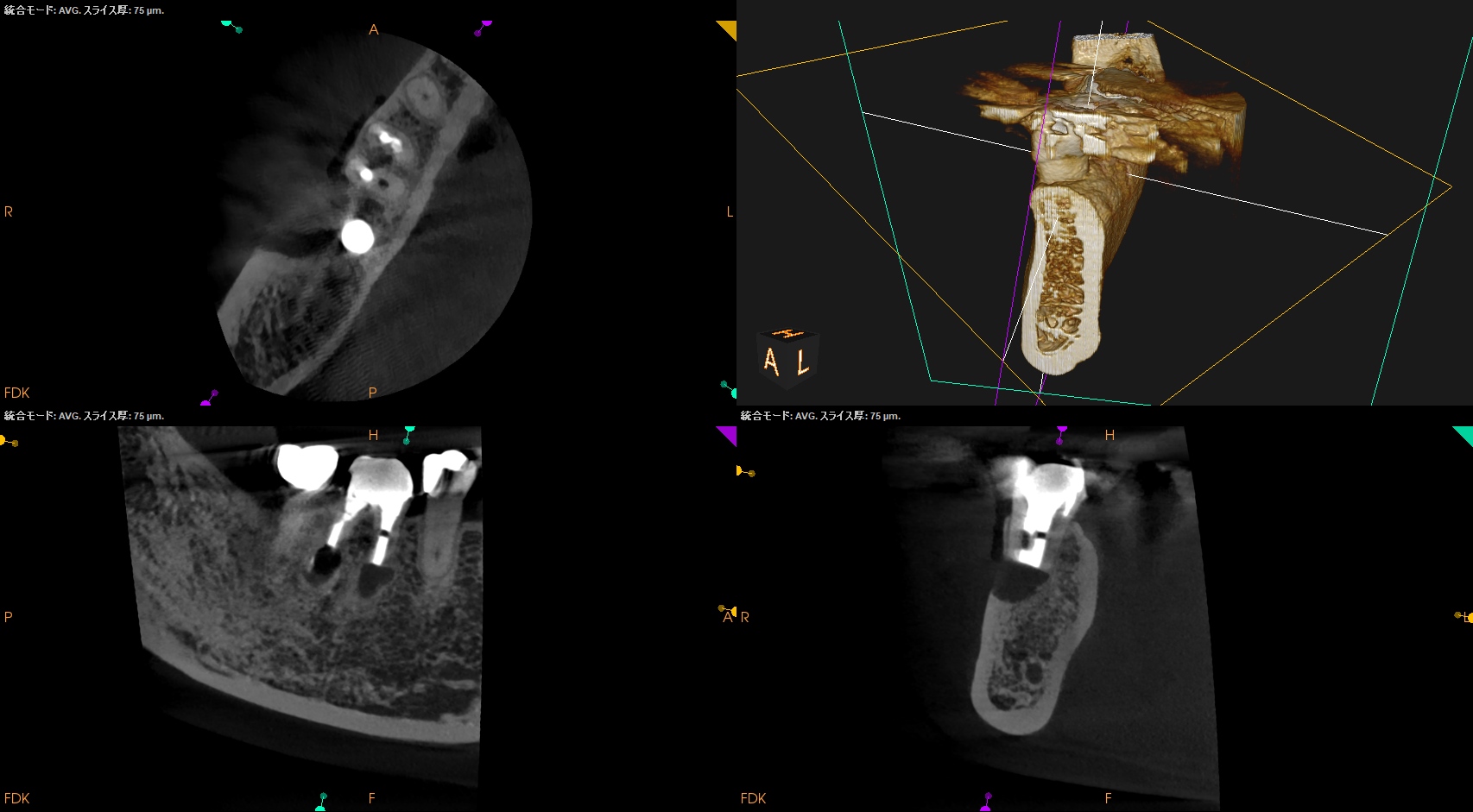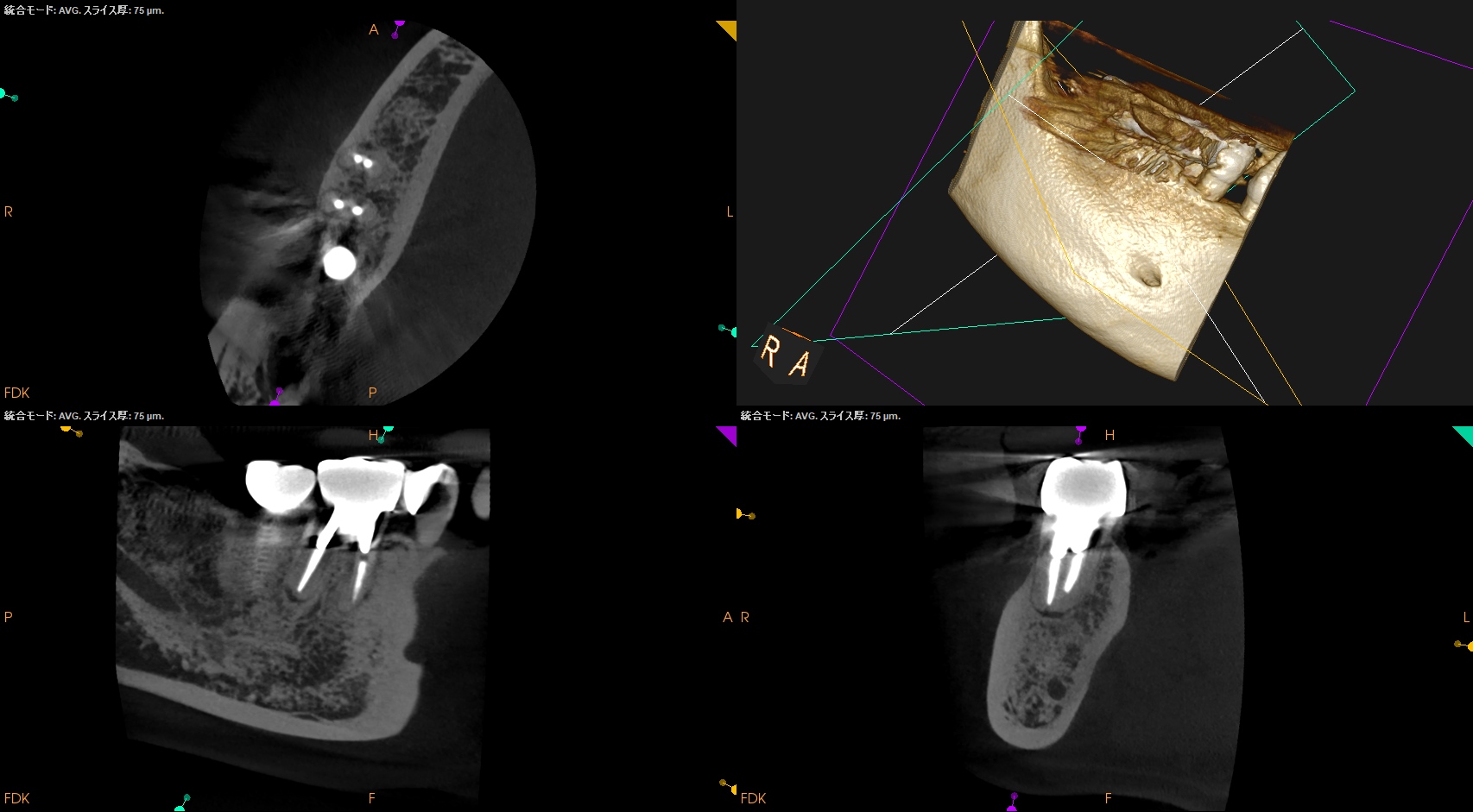 右下のインプラントの隣の歯の根の先に病気があり、このままだとインプラントに影響があると言われた。インプラントはお金がかかったので何とか治療して悪い歯を直してインプラントを守りたい。