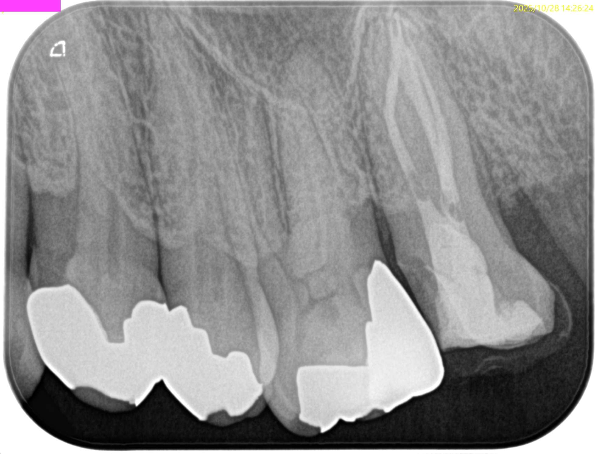根尖病変があり、上顎洞炎を呈している。