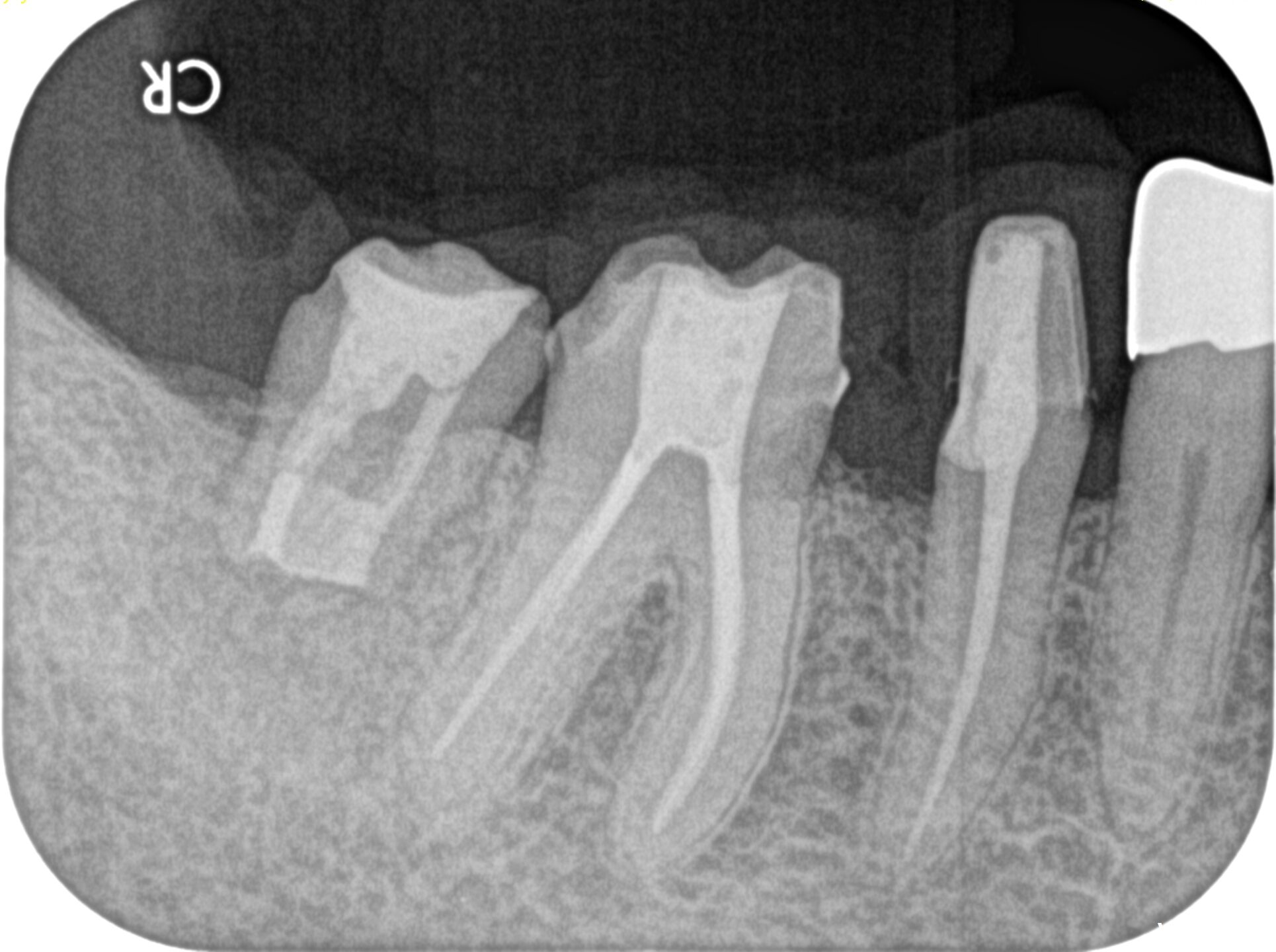 この歯牙の根尖部の歯槽骨が回復するかどうか?は時間が解決する。
