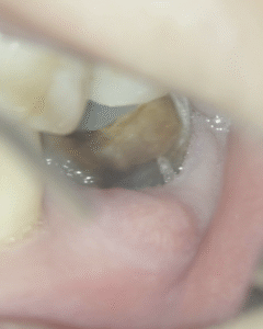 初診時にあった歯肉の腫脹(↓)は消失していた。