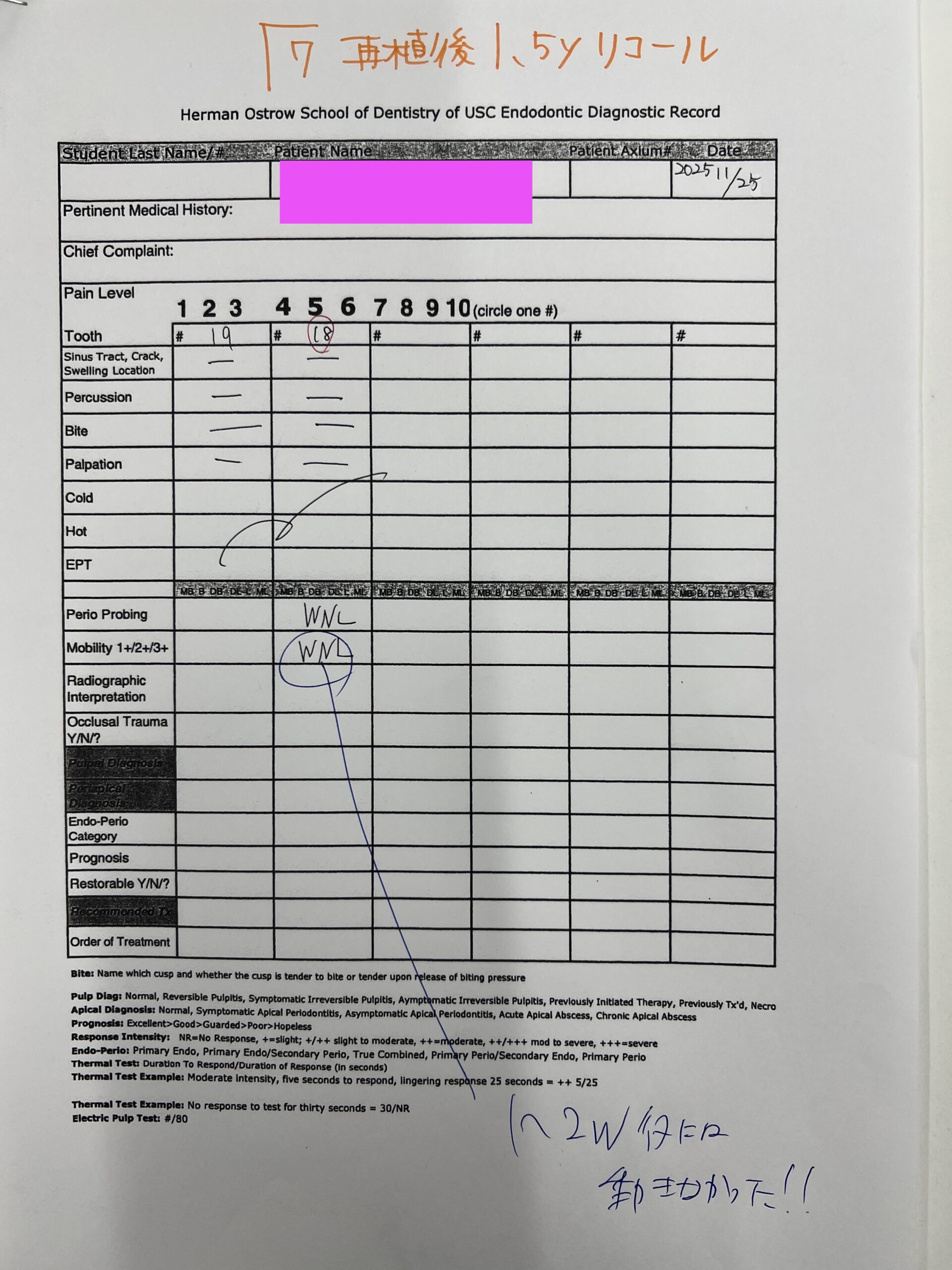 打診検査時のアンキローシス音もないことからこの日で終診とさせていただいた。