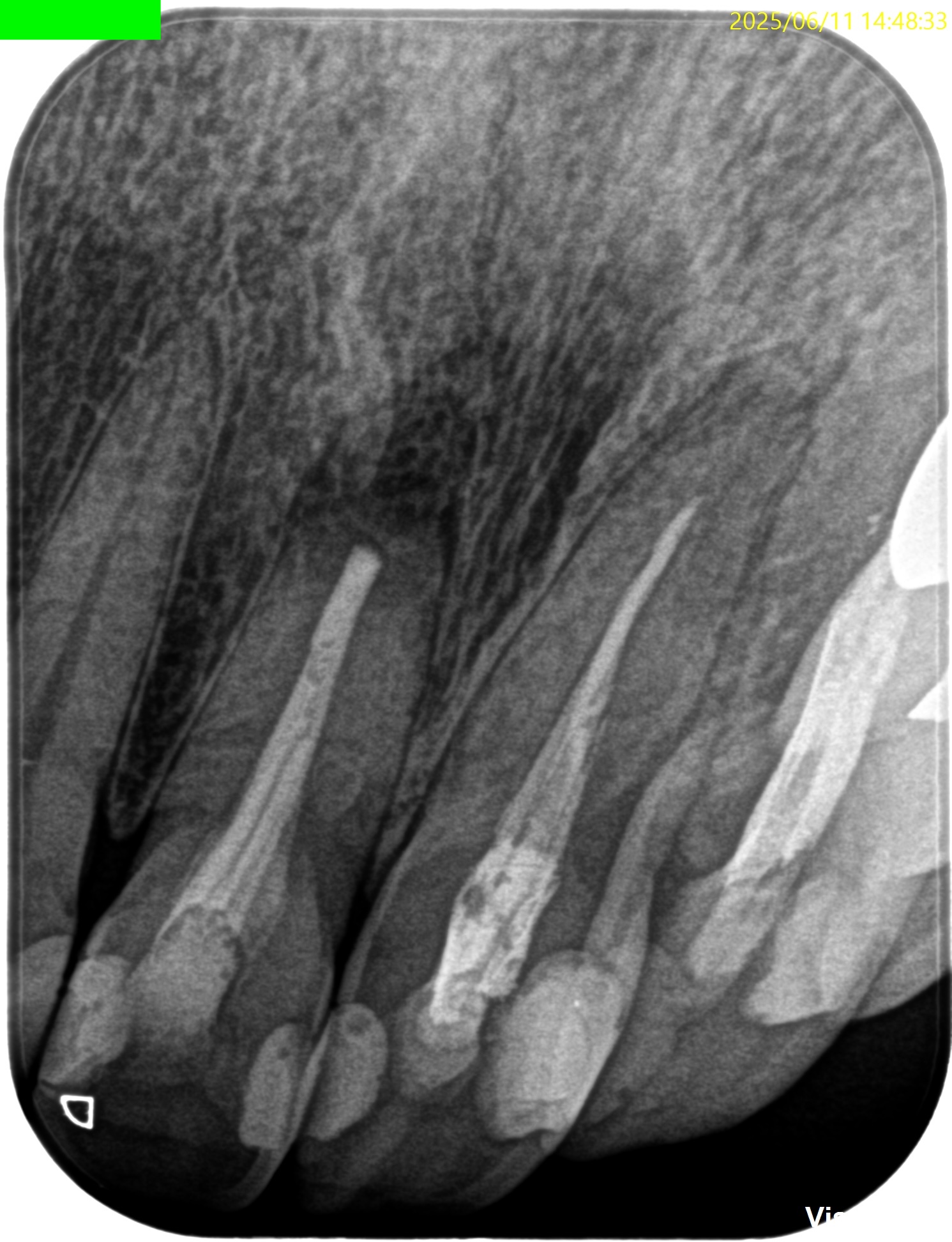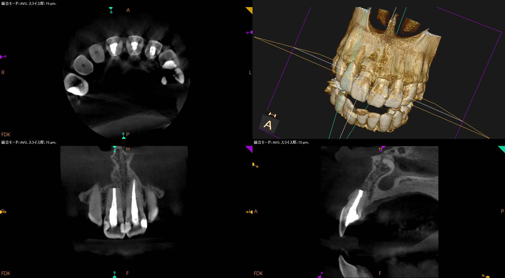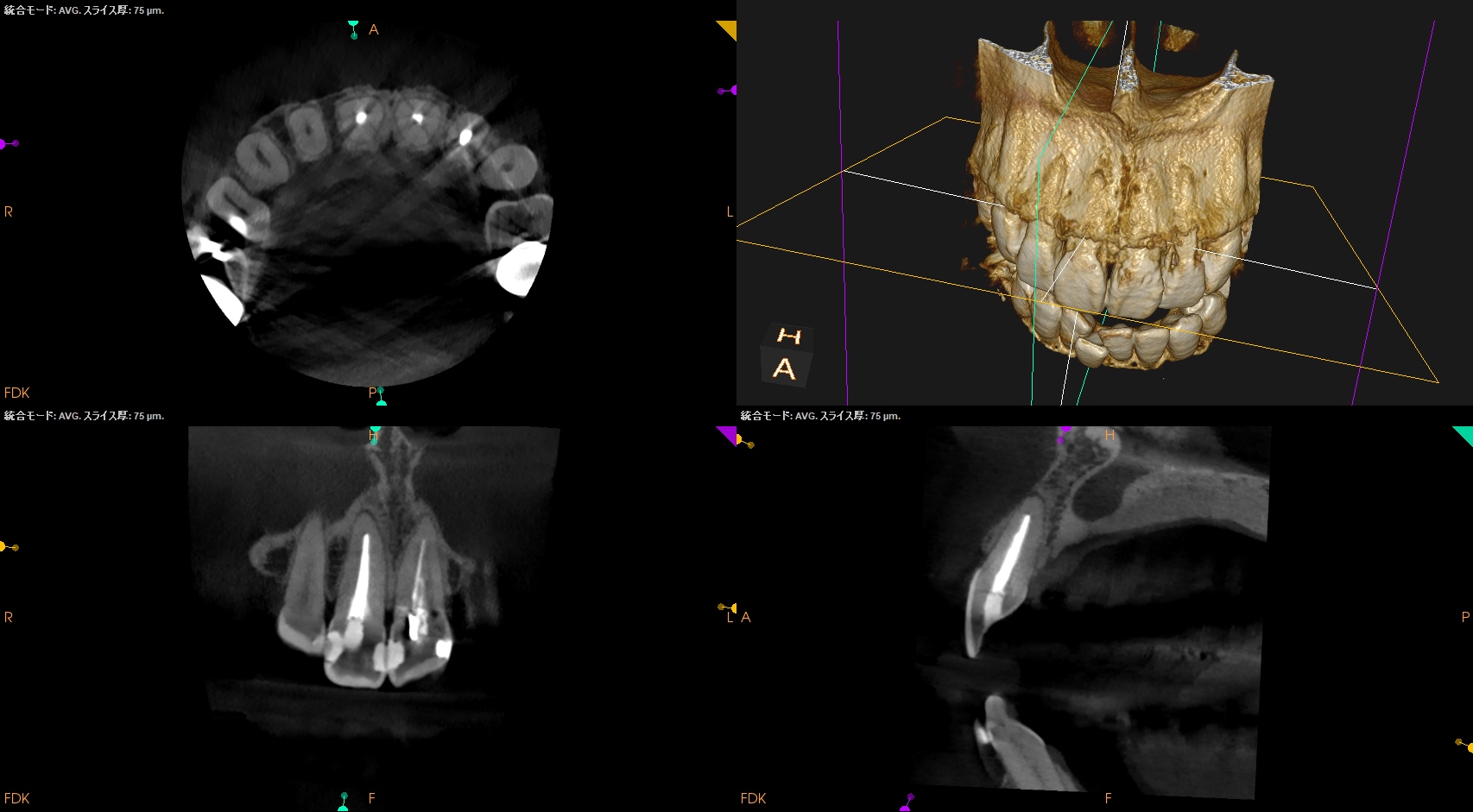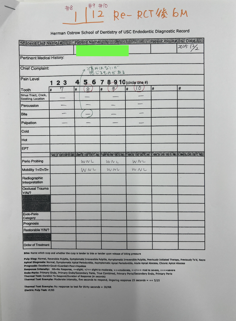 この後、#9,10を再根管治療し、#8,9,10を支台築造した。