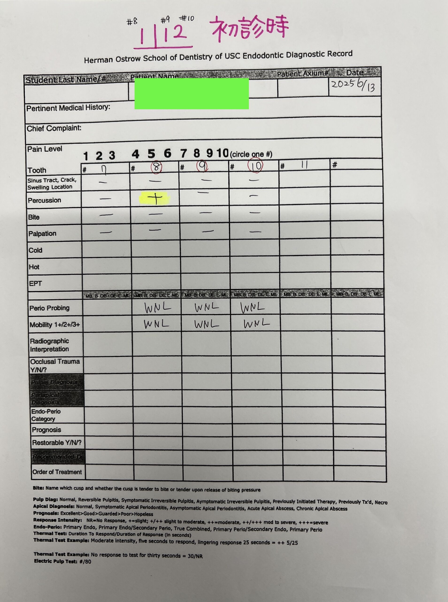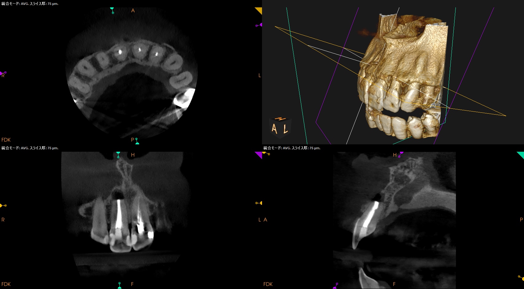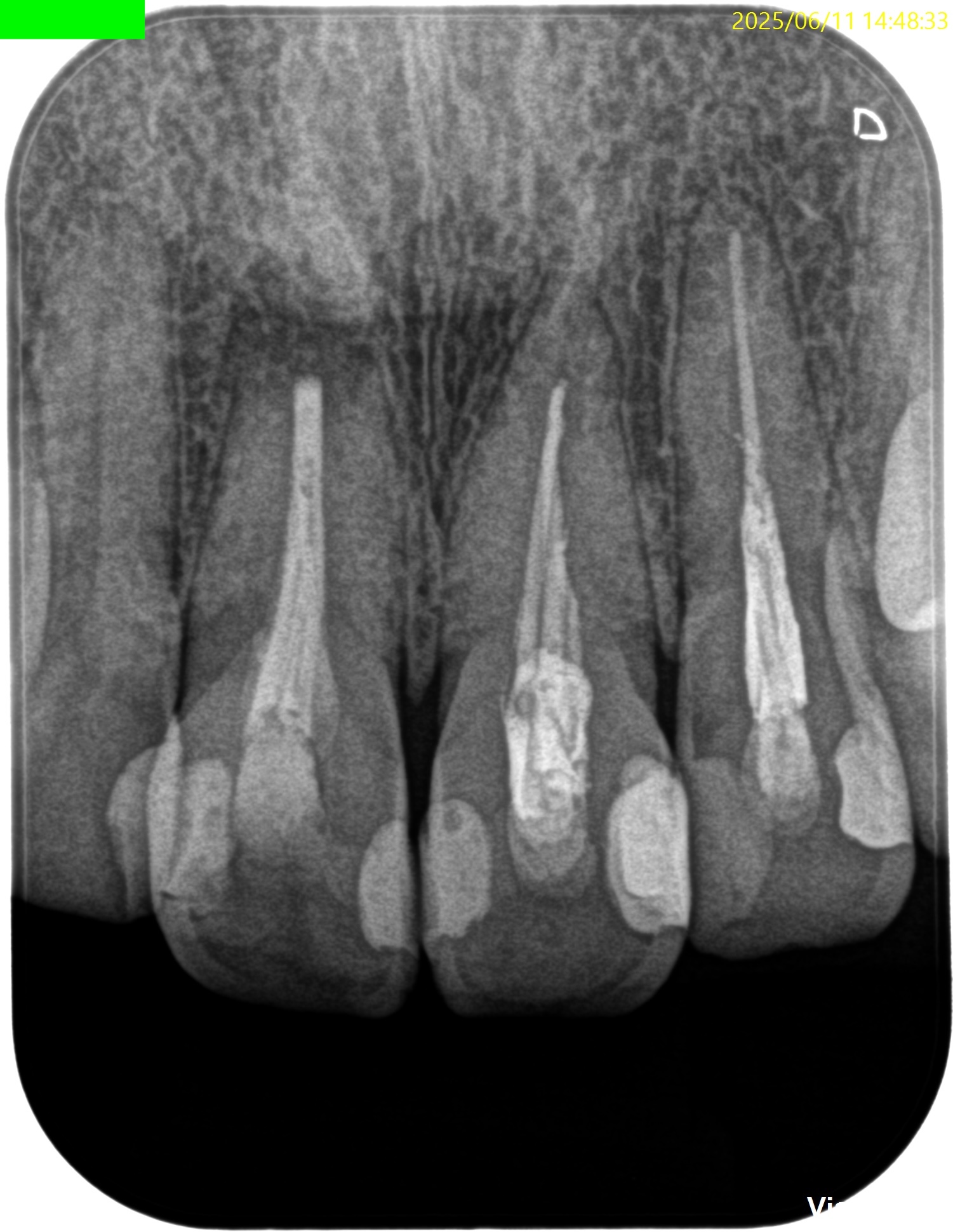 この後、#9,10を再根管治療し、#8,9,10を支台築造した。