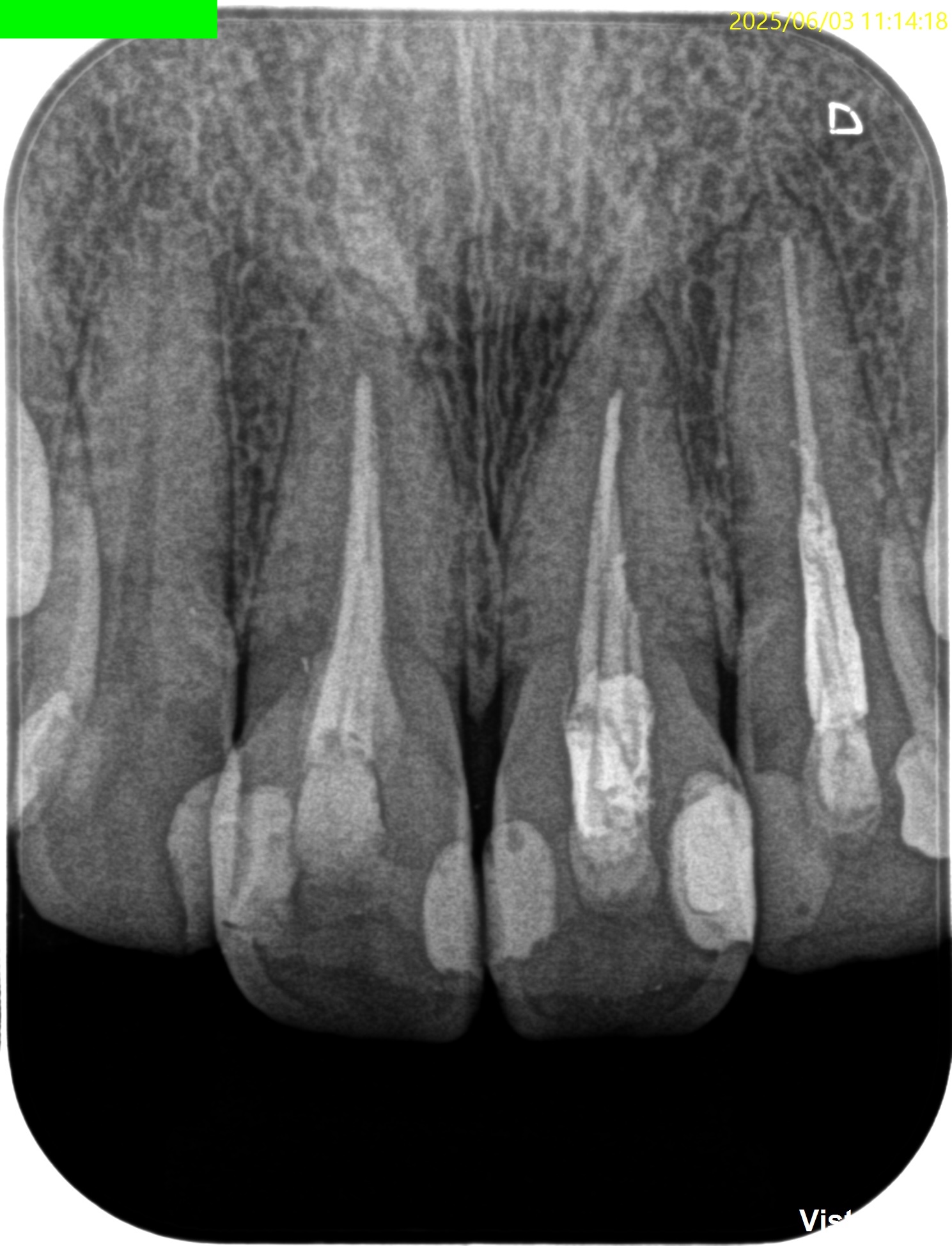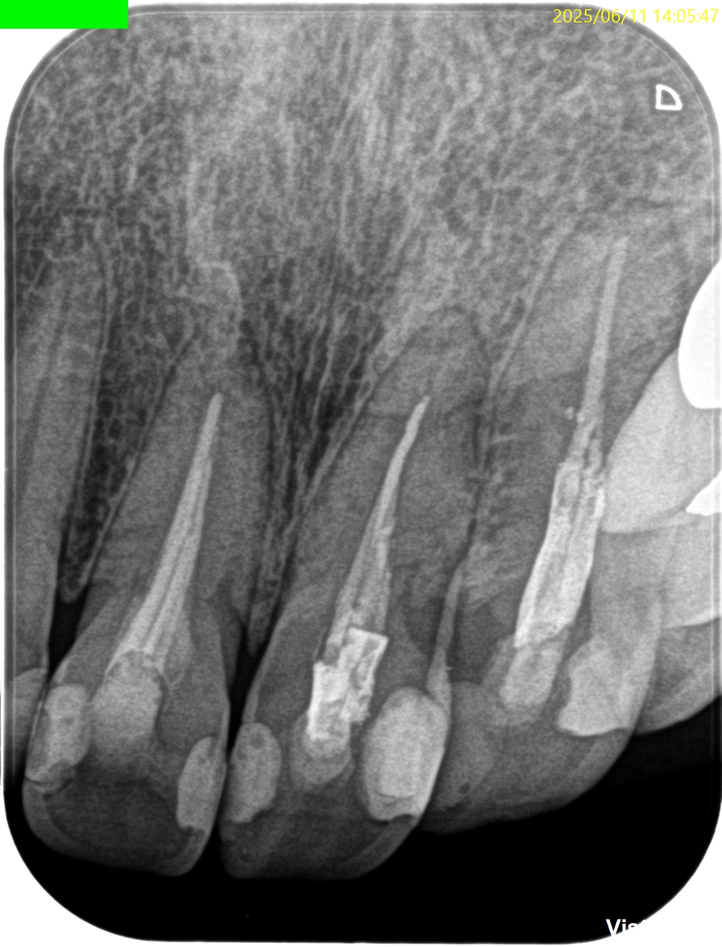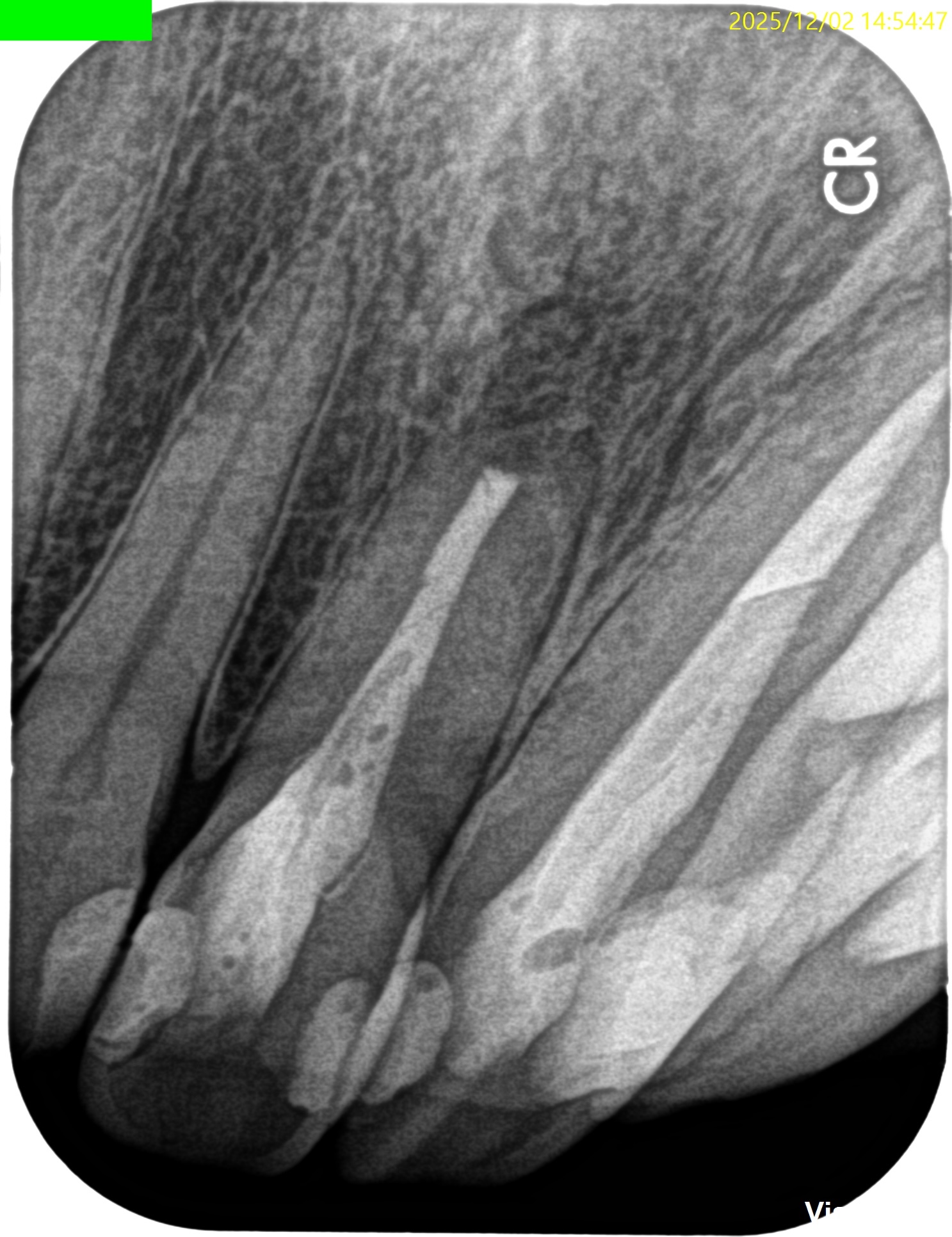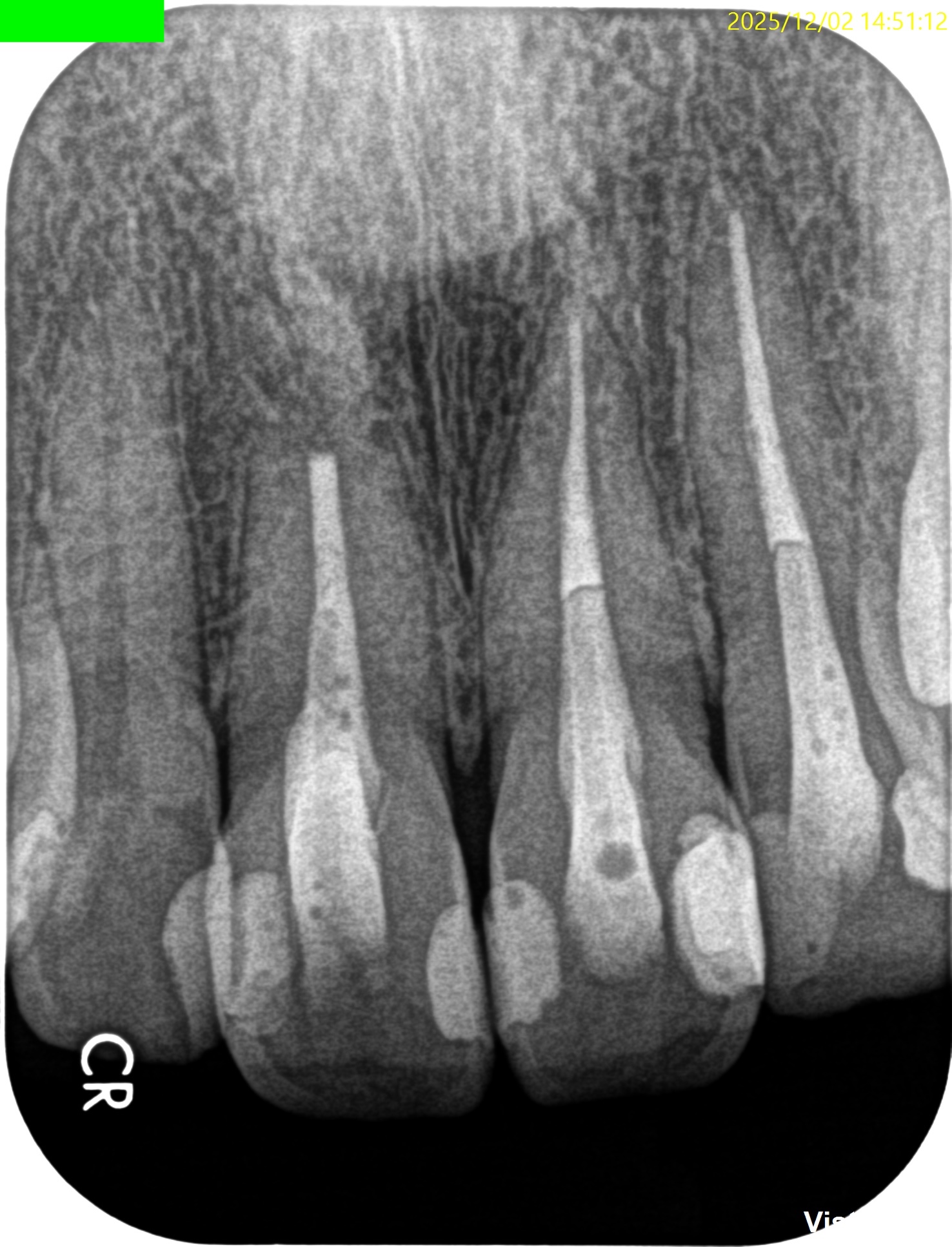 この後、#9,10を再根管治療し、#8,9,10を支台築造した。