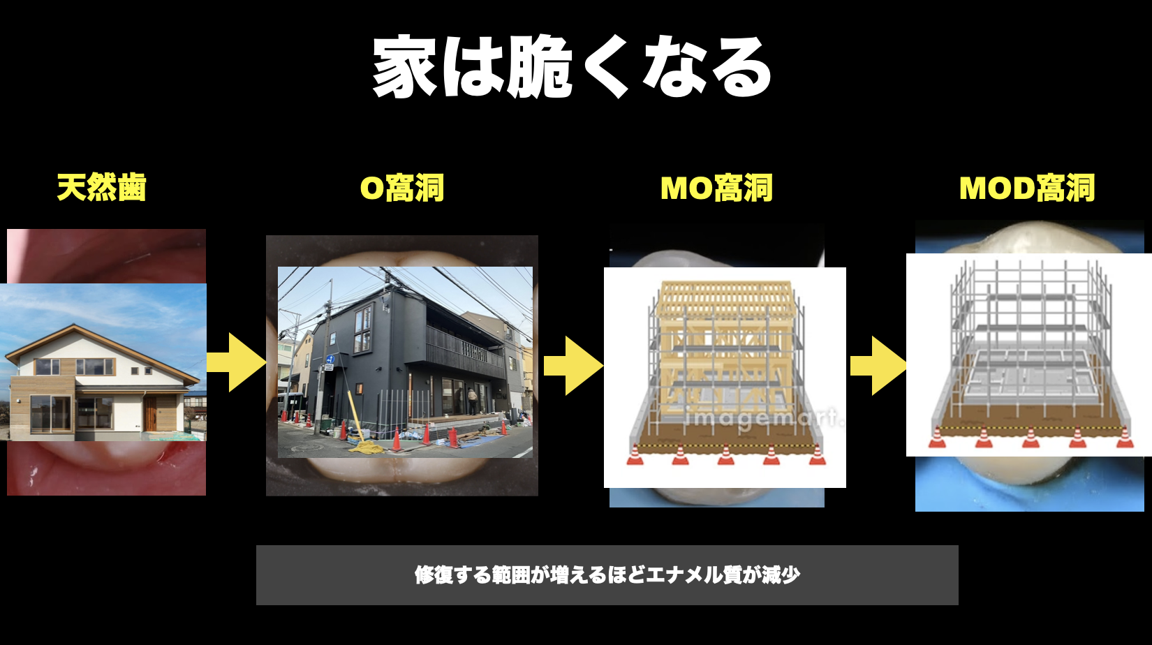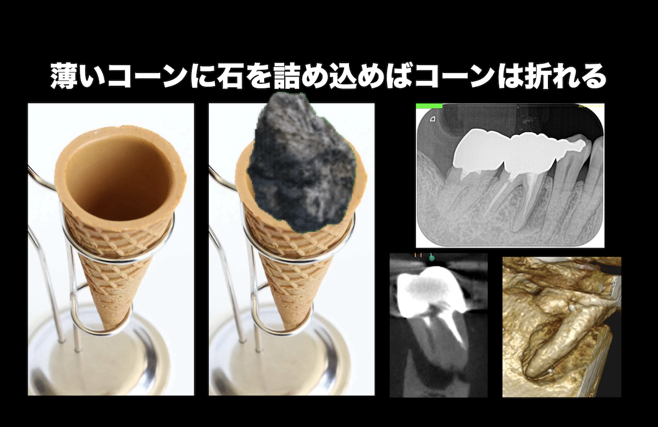 歯冠部はその形状がなくなればなくなるほど脆くなる。