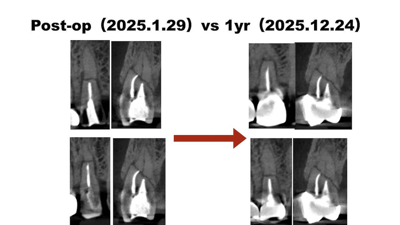 臨床症状, 術前の歯根膜腔隙の拡大はともに消失した。