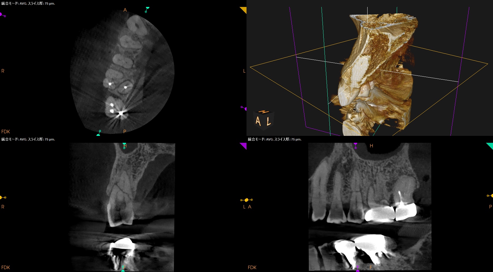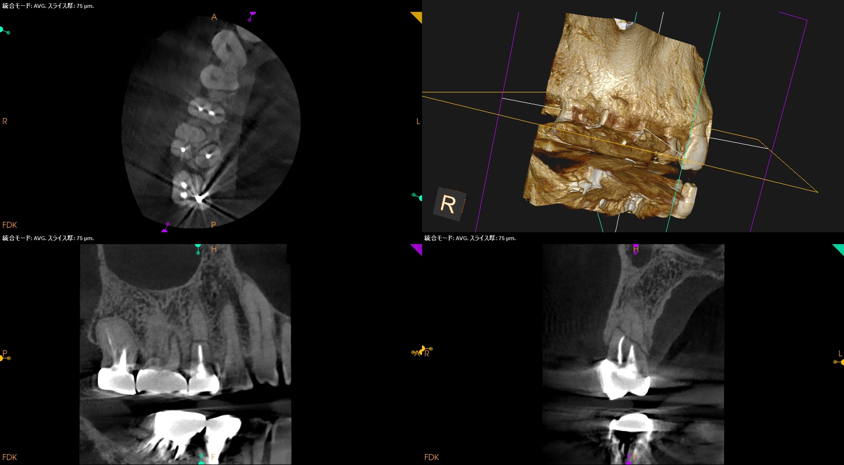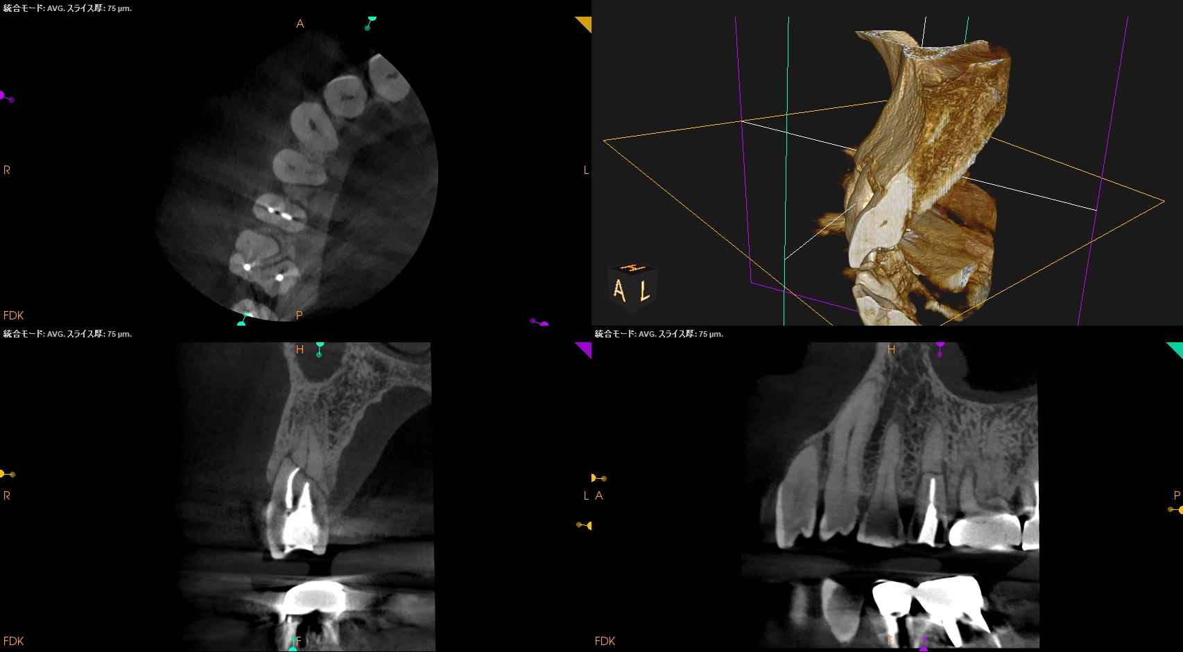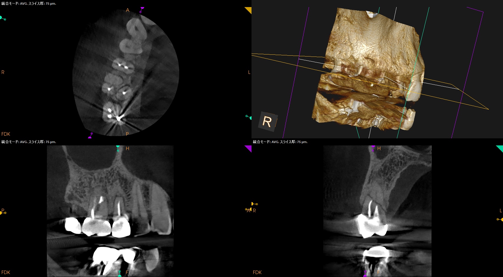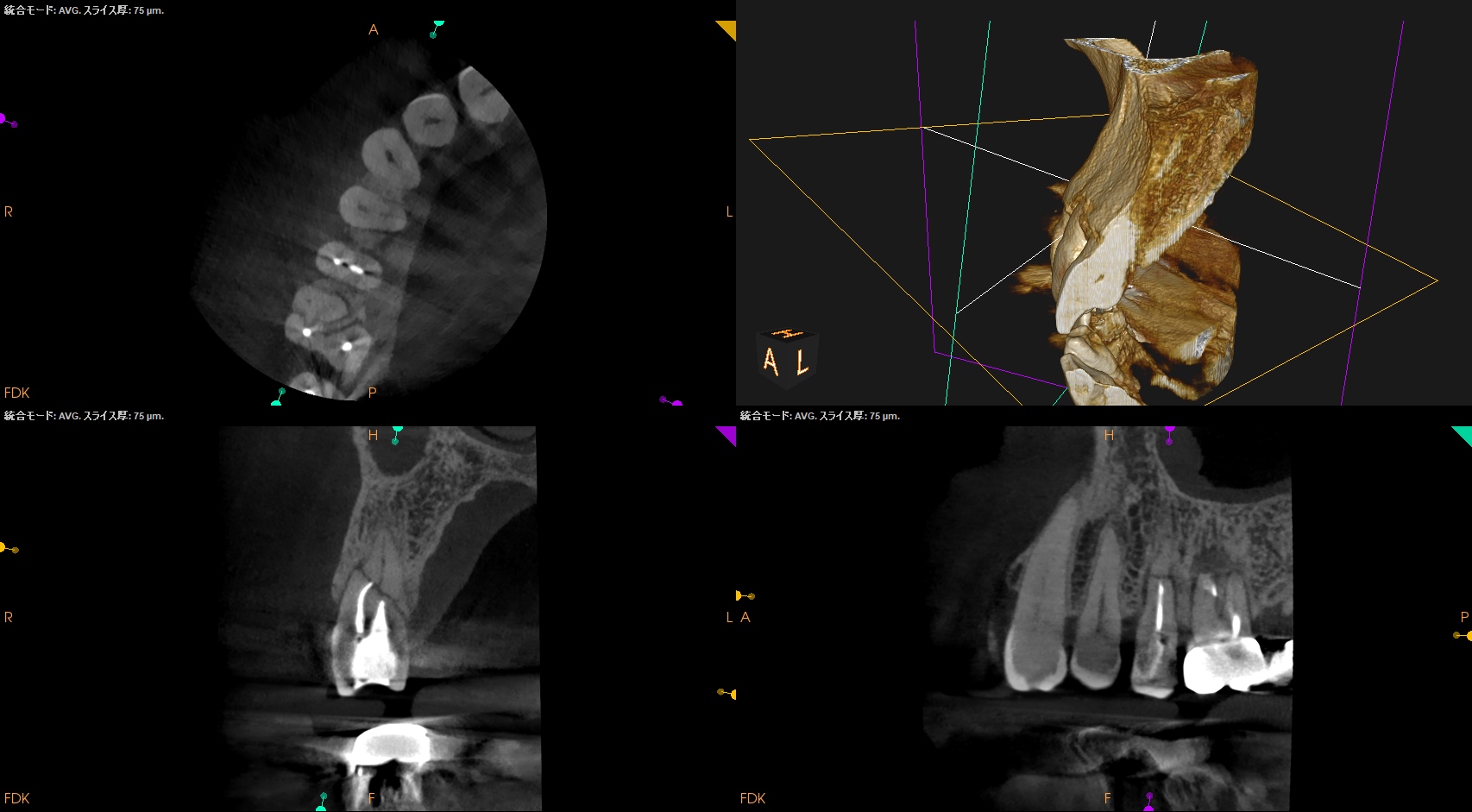 ここで重要なことは破折片の口蓋側寄りの歯根には病変がないということだ。