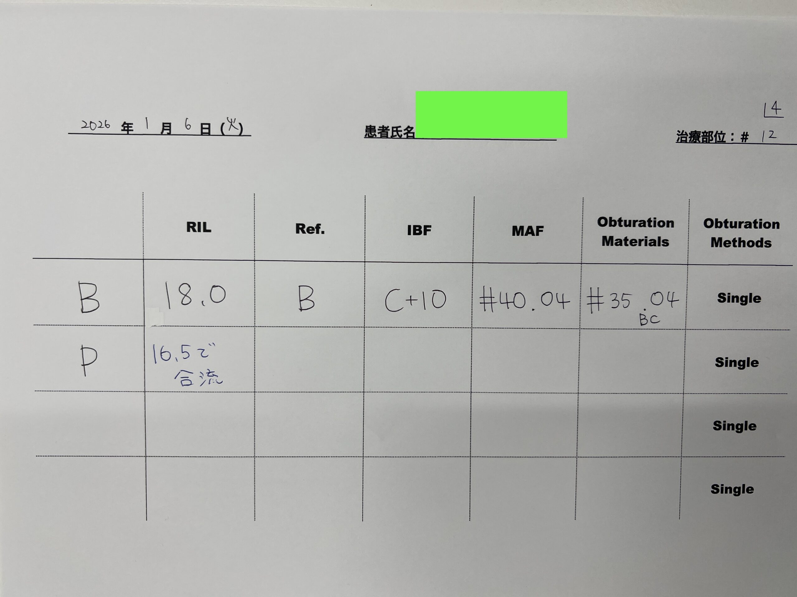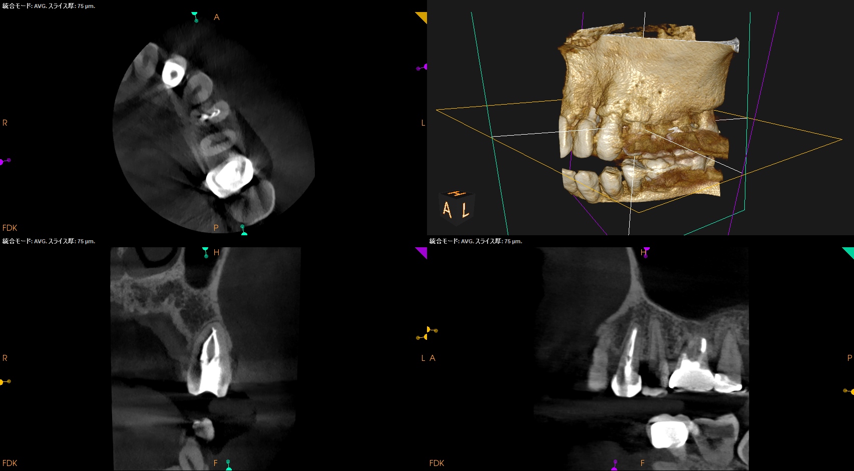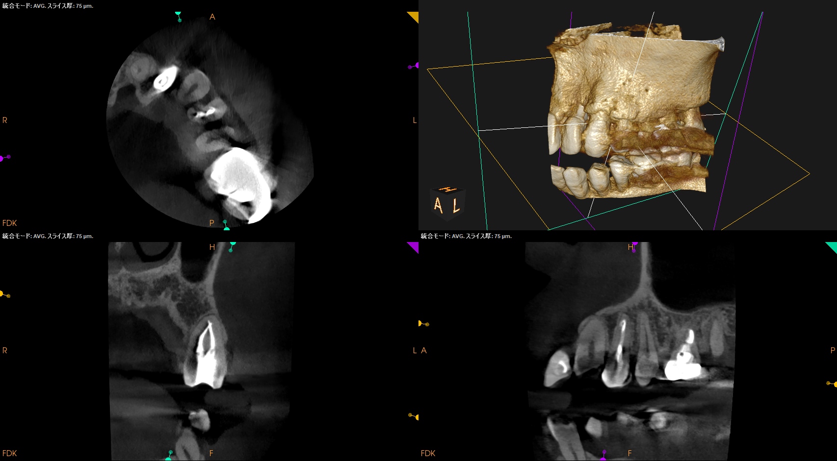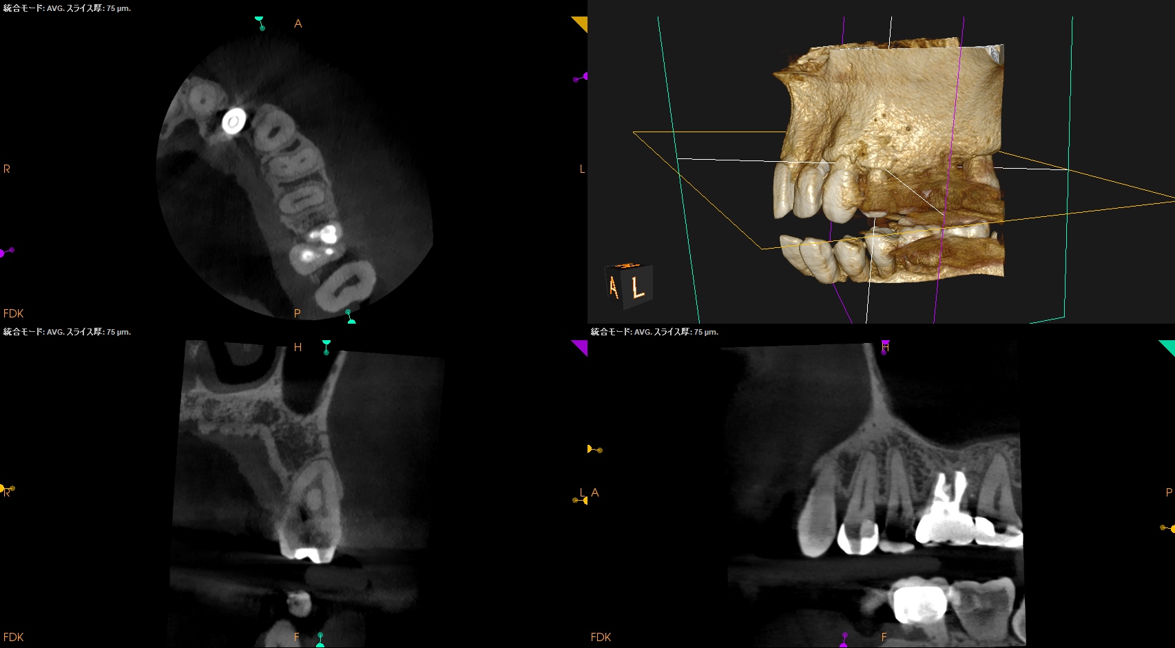 また、治療前のCBCTで2根管性のことから合流部位の確認をいつものように行った。