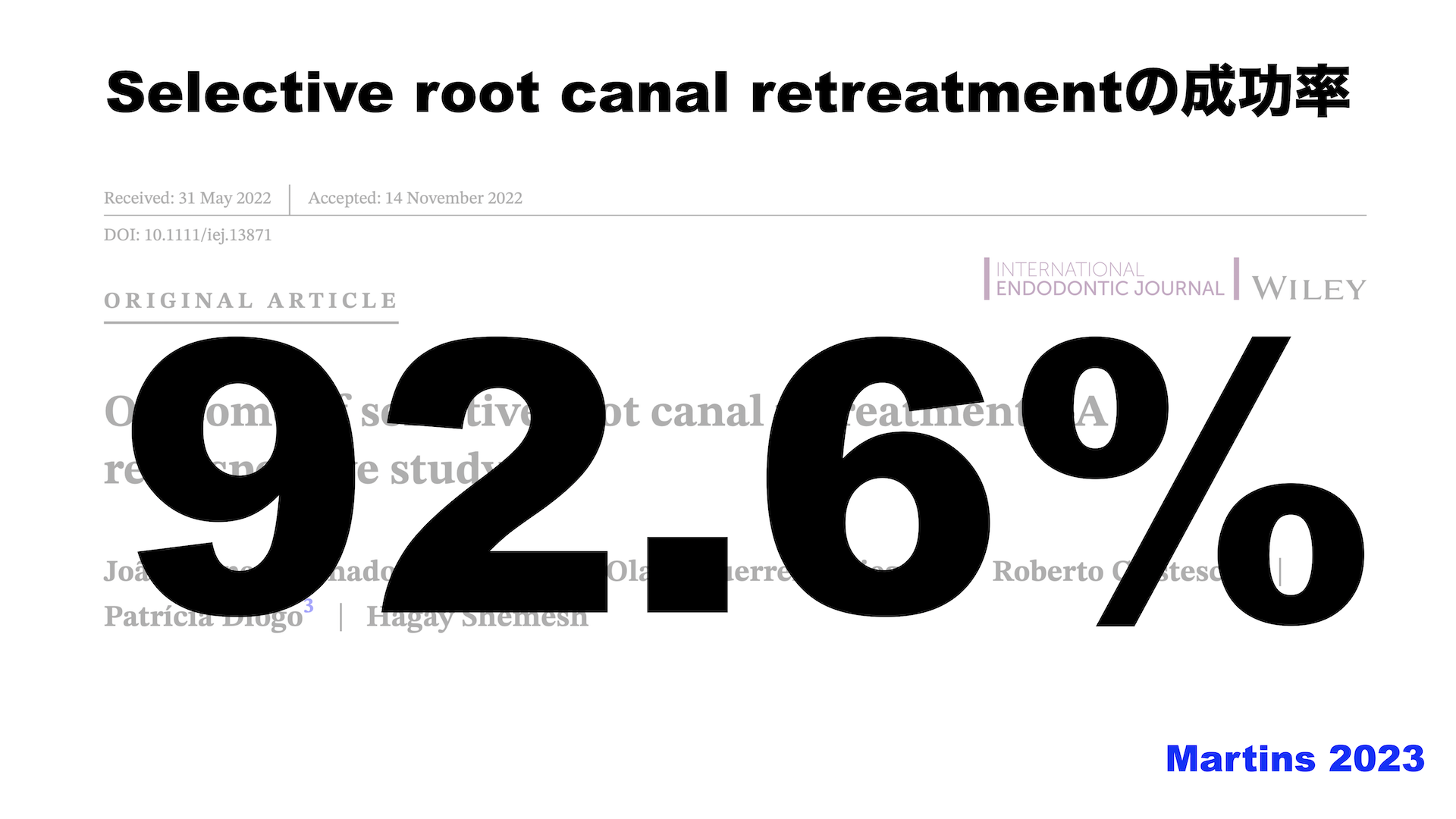 再根管治療の勝てる見込みについての話を文献ベースにまず行った。