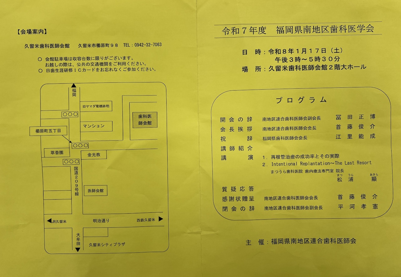 2026.1.17の週末土曜日は久留米歯科医師会館2階大ホールで歯内療法の講演を行った。