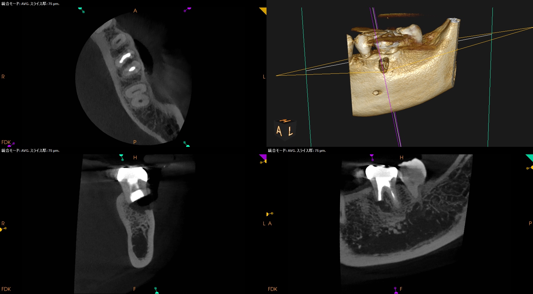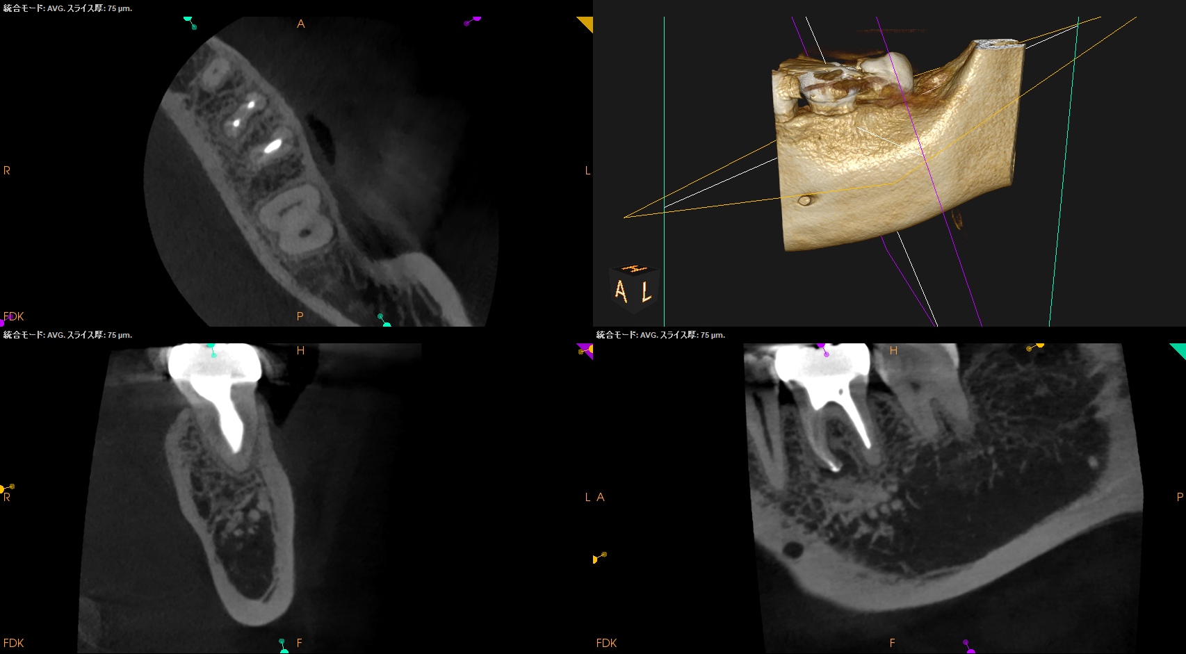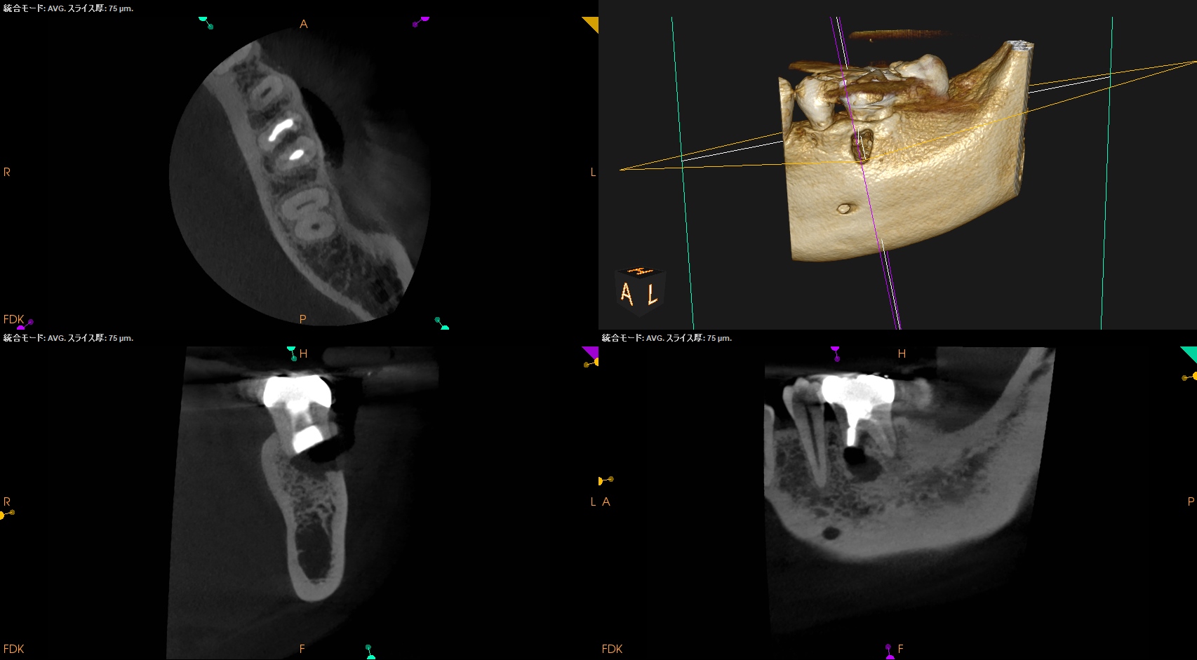 再根管治療に見込みはないため、Apicoectomyなのだが
