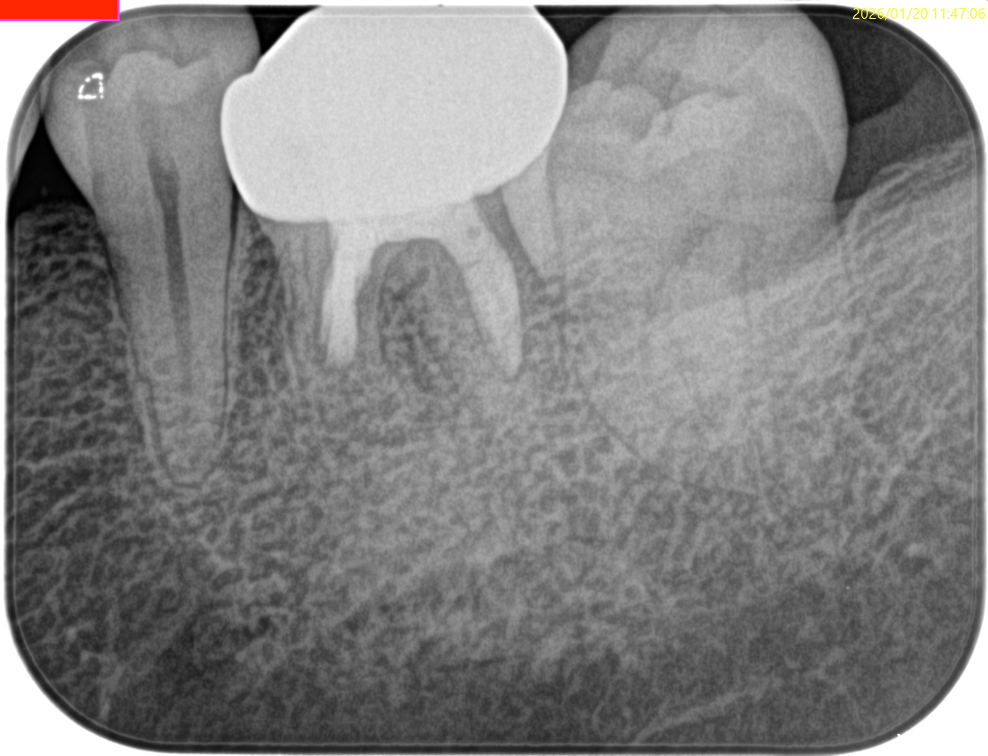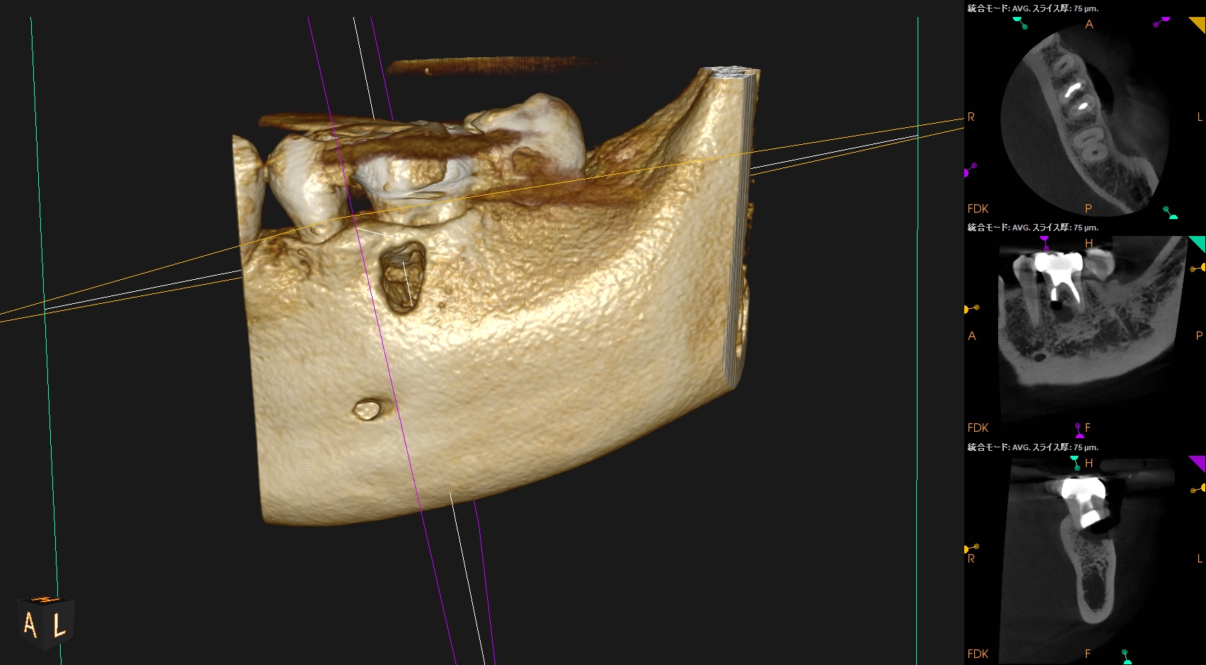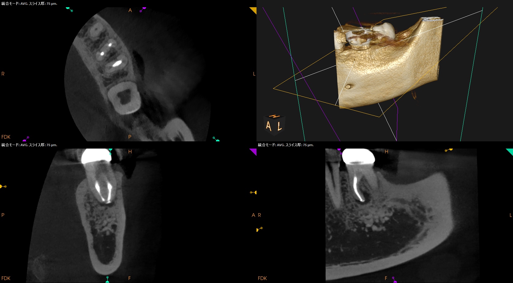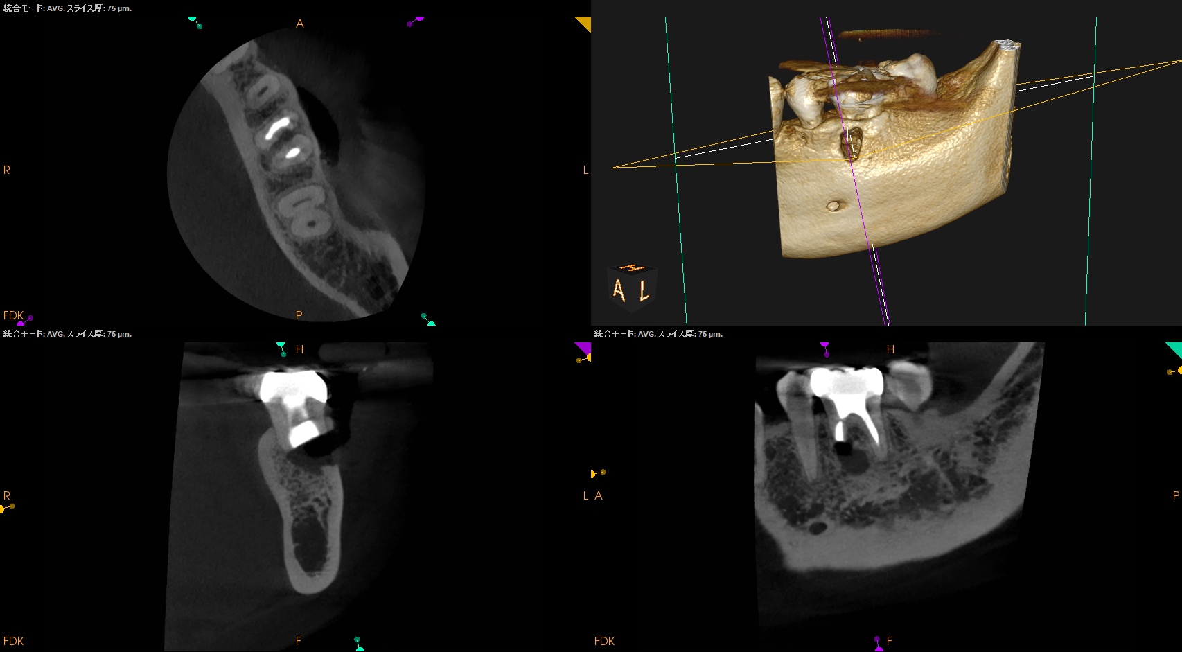 再根管治療に見込みはないため、Apicoectomyなのだが