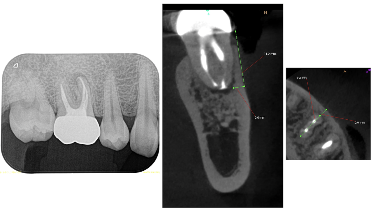 当該部位を2mm Osteotomyすると#19 MのApexが発見できそこを3mm切断するには頬舌径が6.2mm必要である。