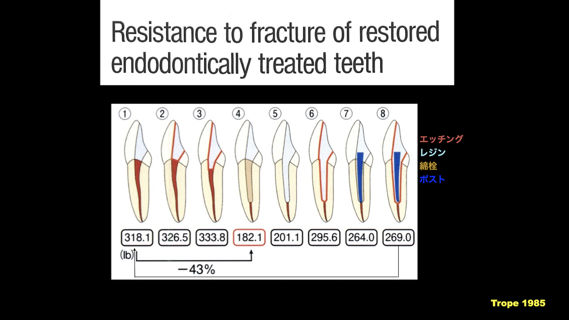 側方加圧でスプレッダーでグイグイやった歯はもれなく破折してしまう。
