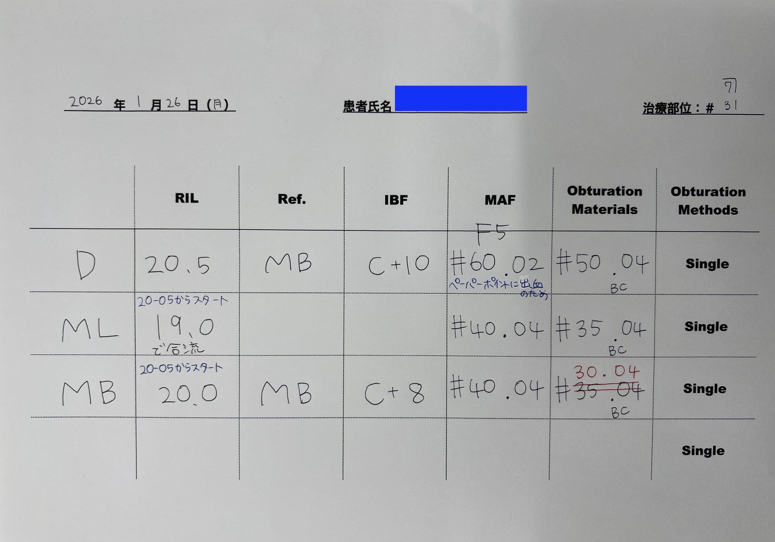 MLとMBは合流根管であるので合流を確認した。