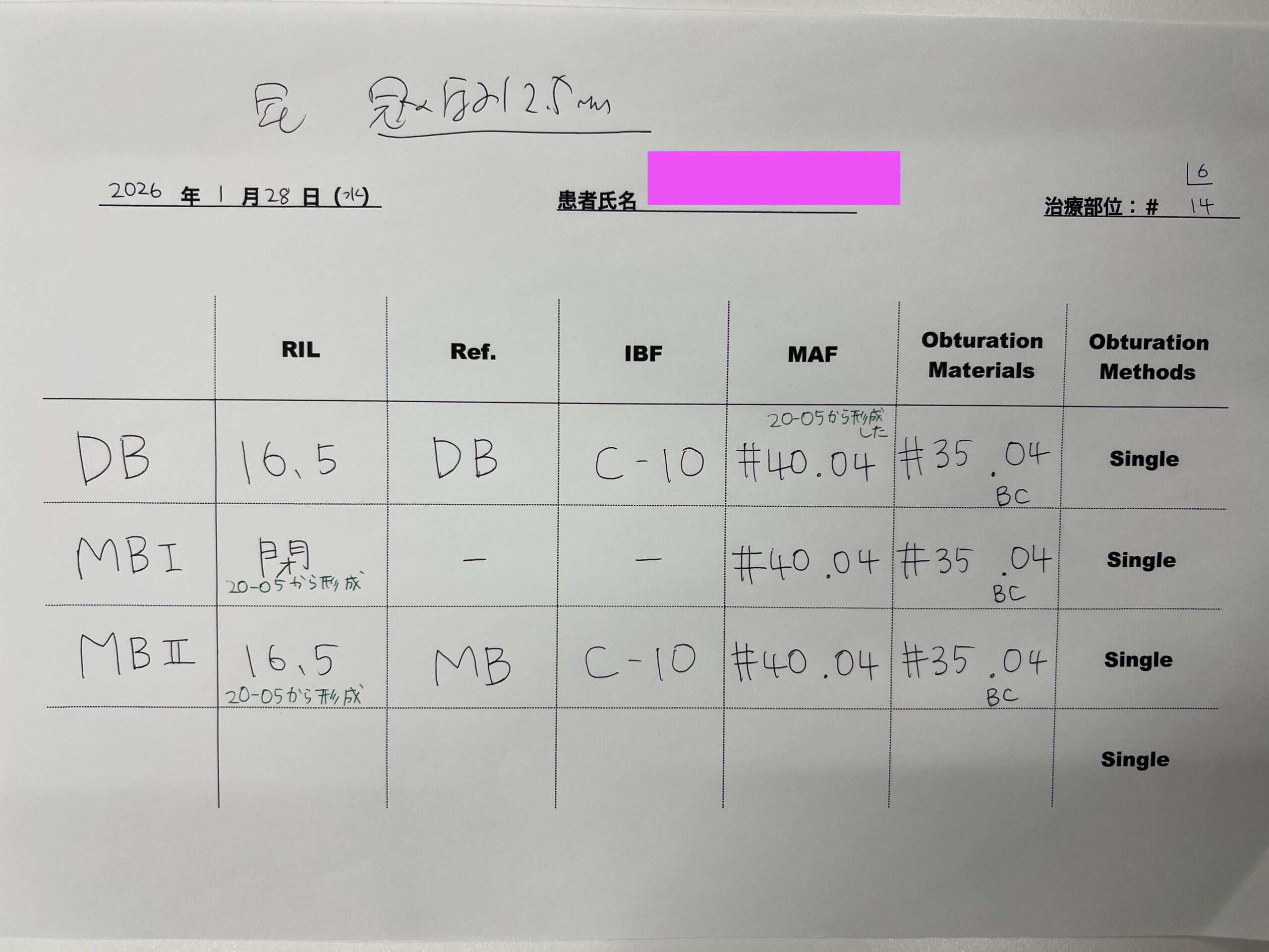 以上を整理すると、以下のように再根管形成を行っている。