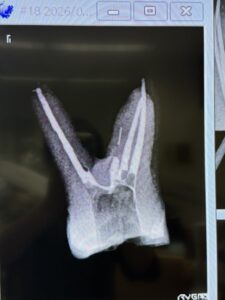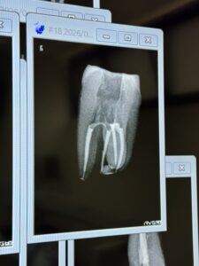 日本では非難の?対象になるがアメリカだと絶賛されるシーラーパフの確認できる根管充填がなされている。