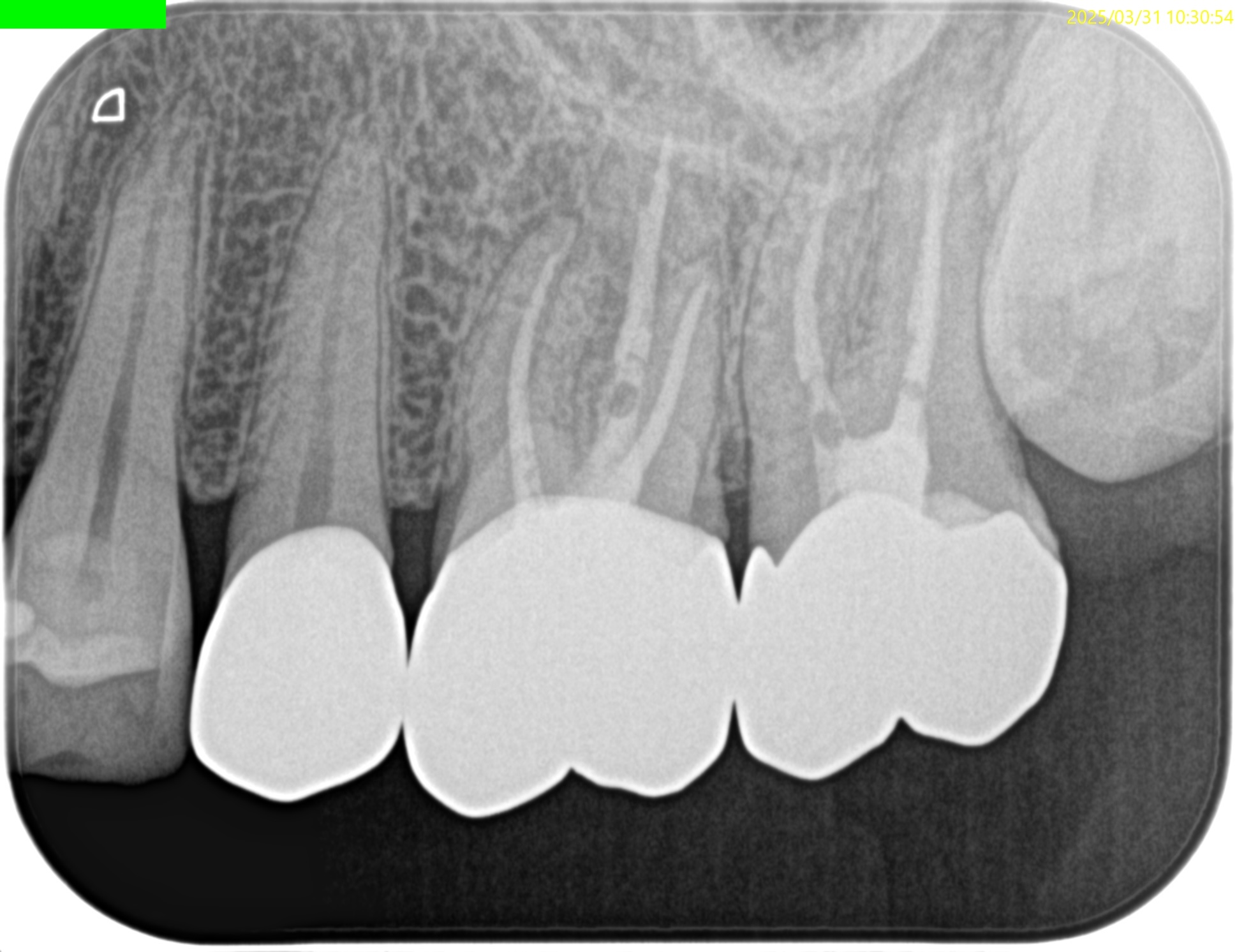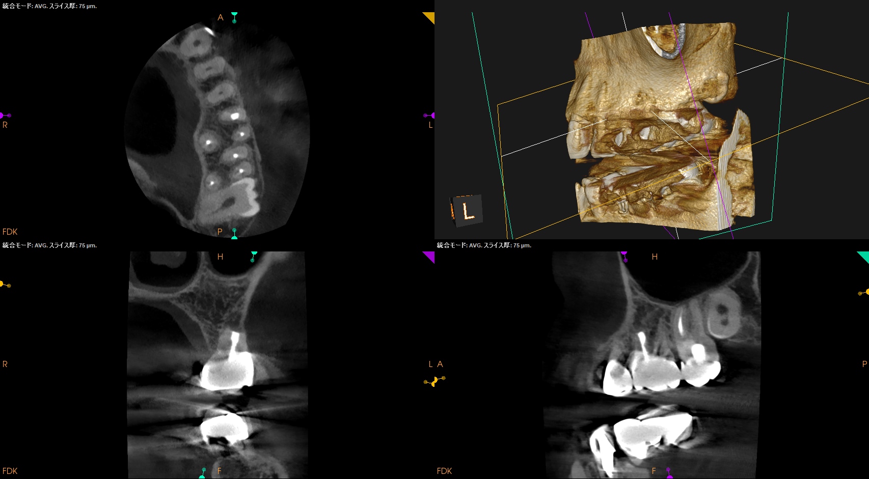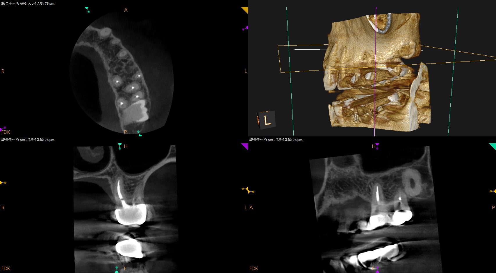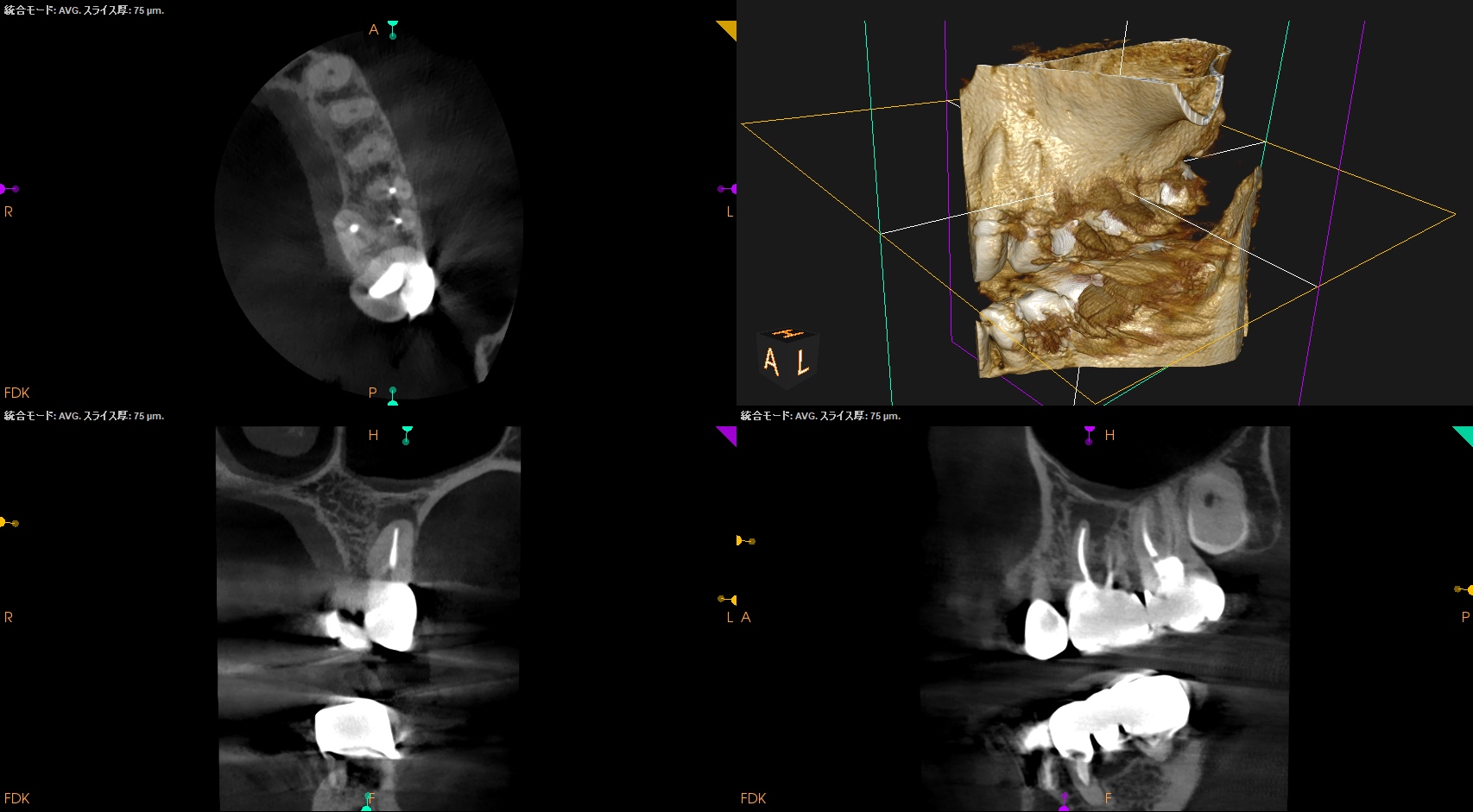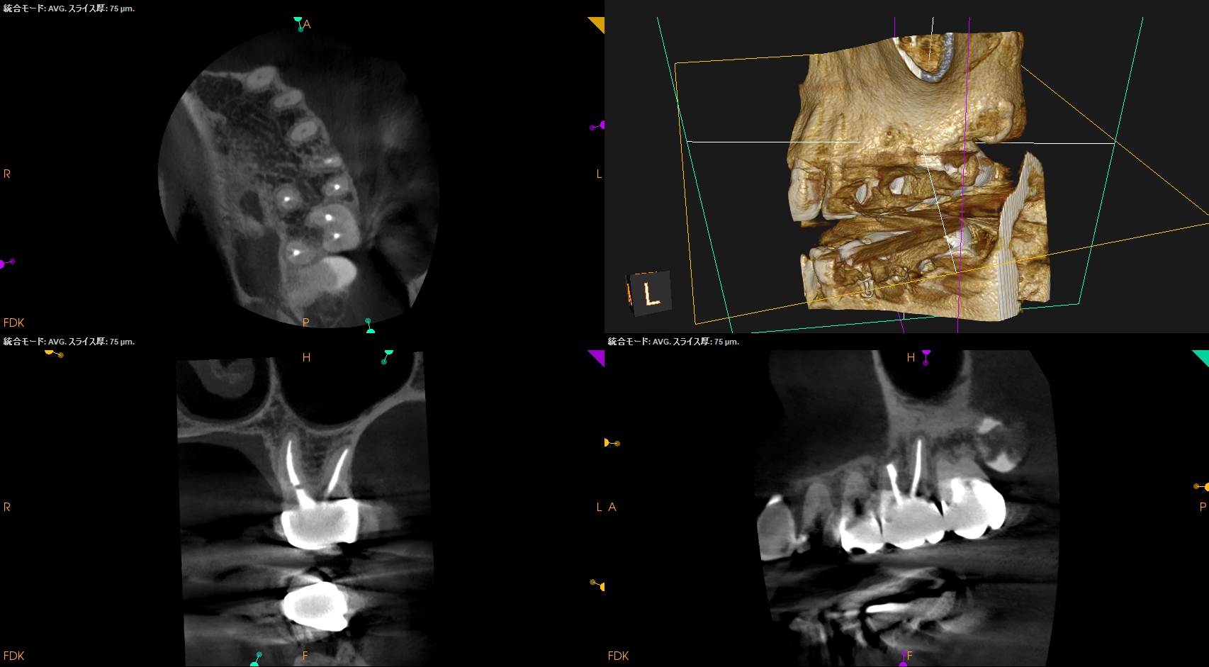 MBの中央にGutta Percha Pointがあることから、MB2はなくMB1のみの処置でいいとわかるところもCBCTの強みである。