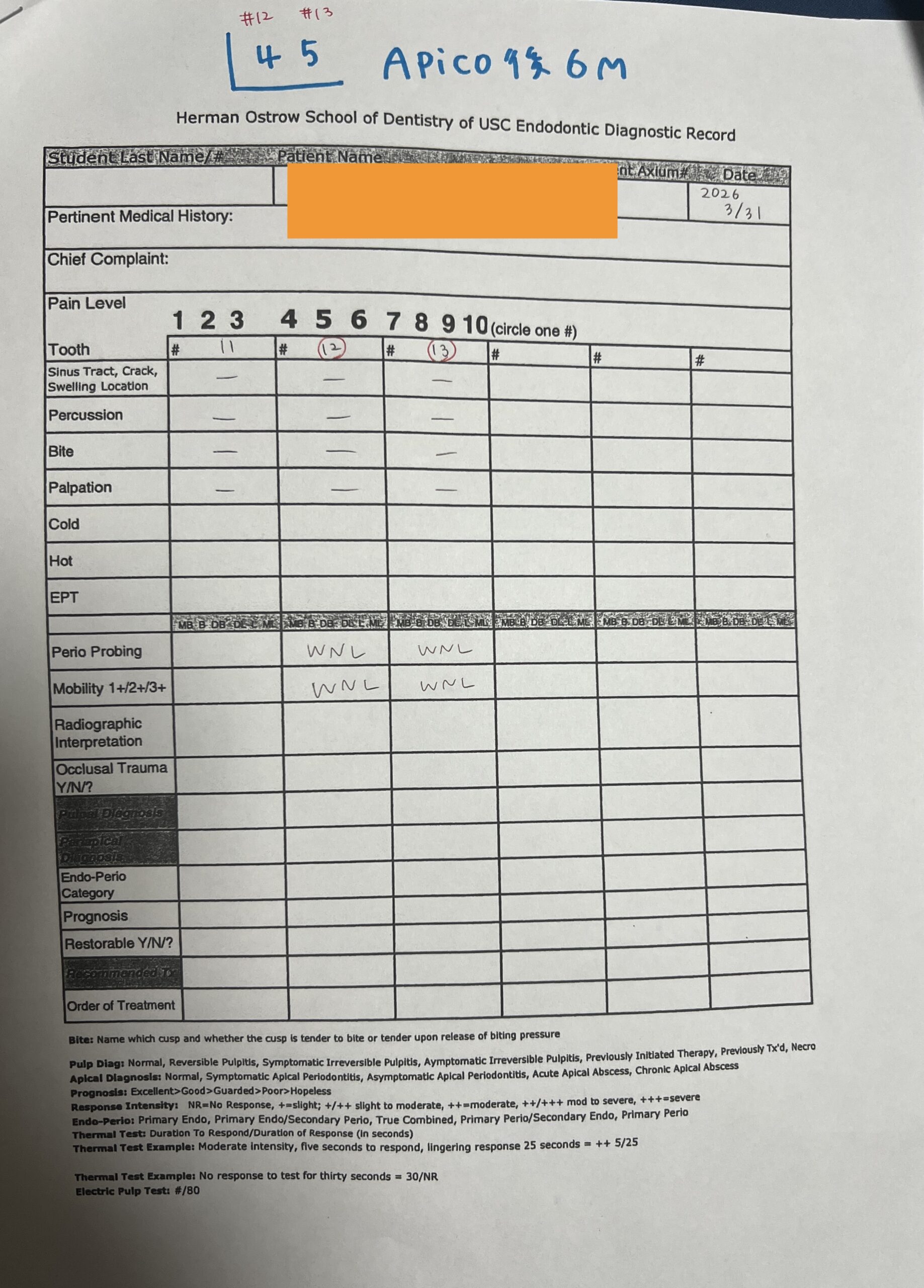 #12,13 Apicoectomy 6M recall(2026.3.31)
