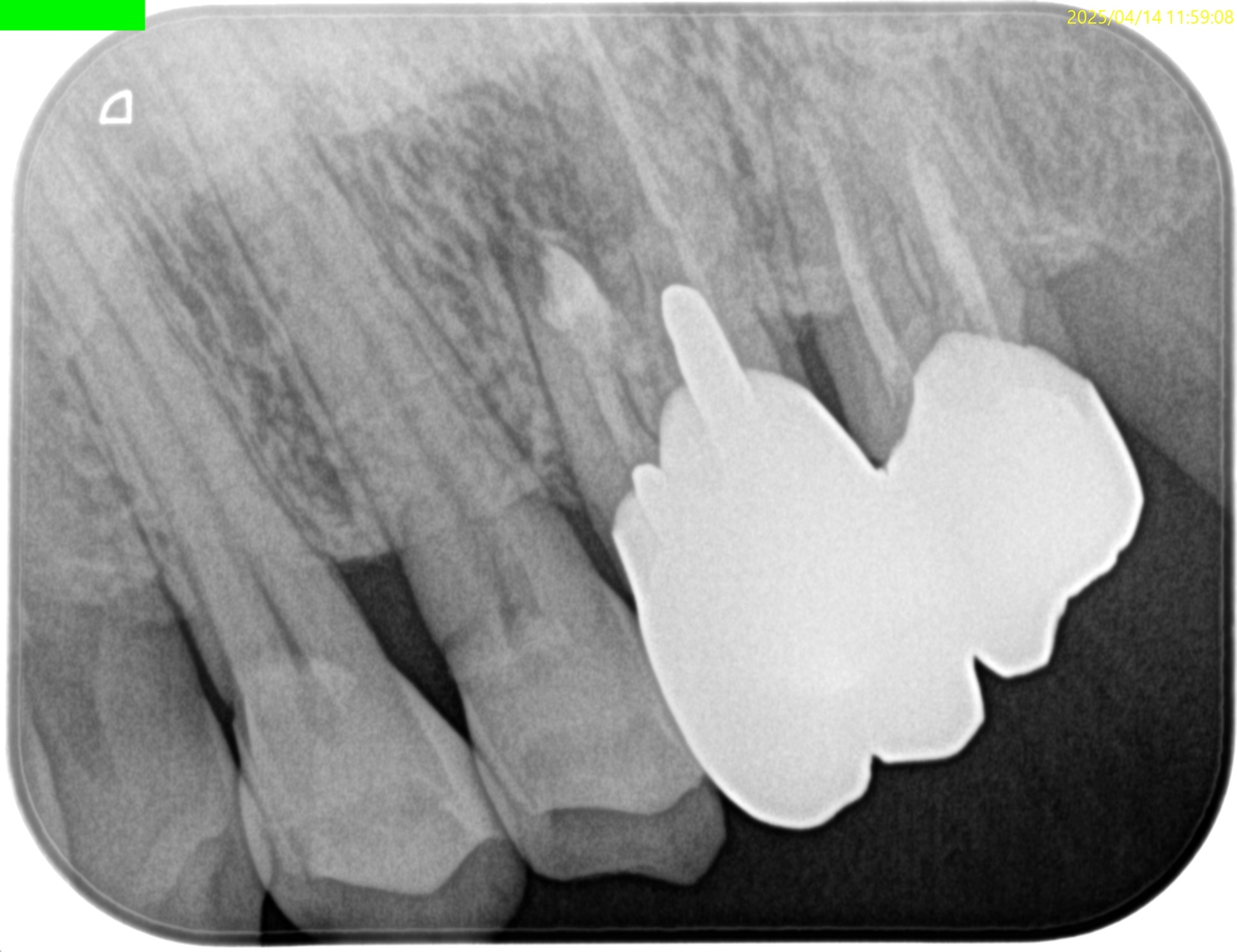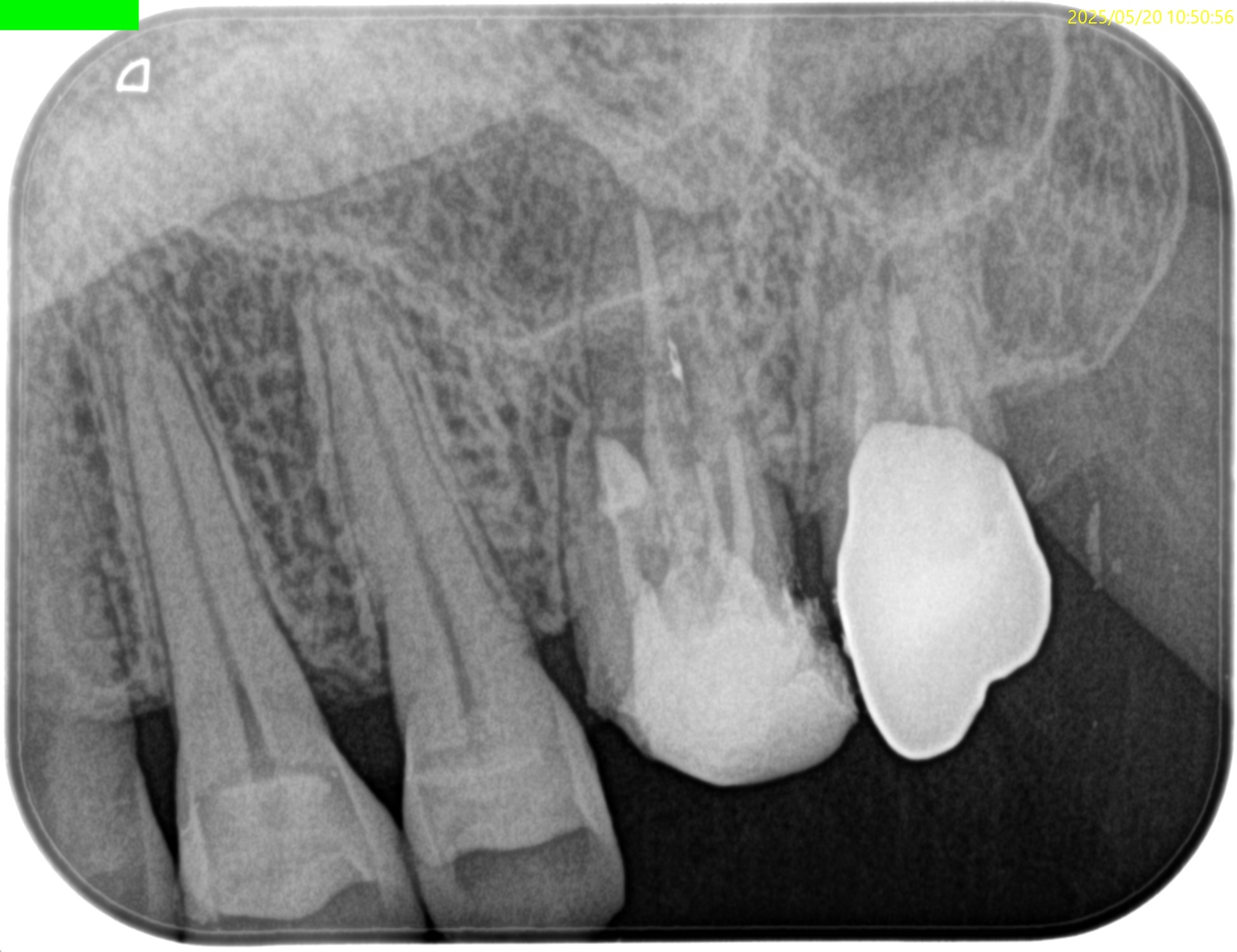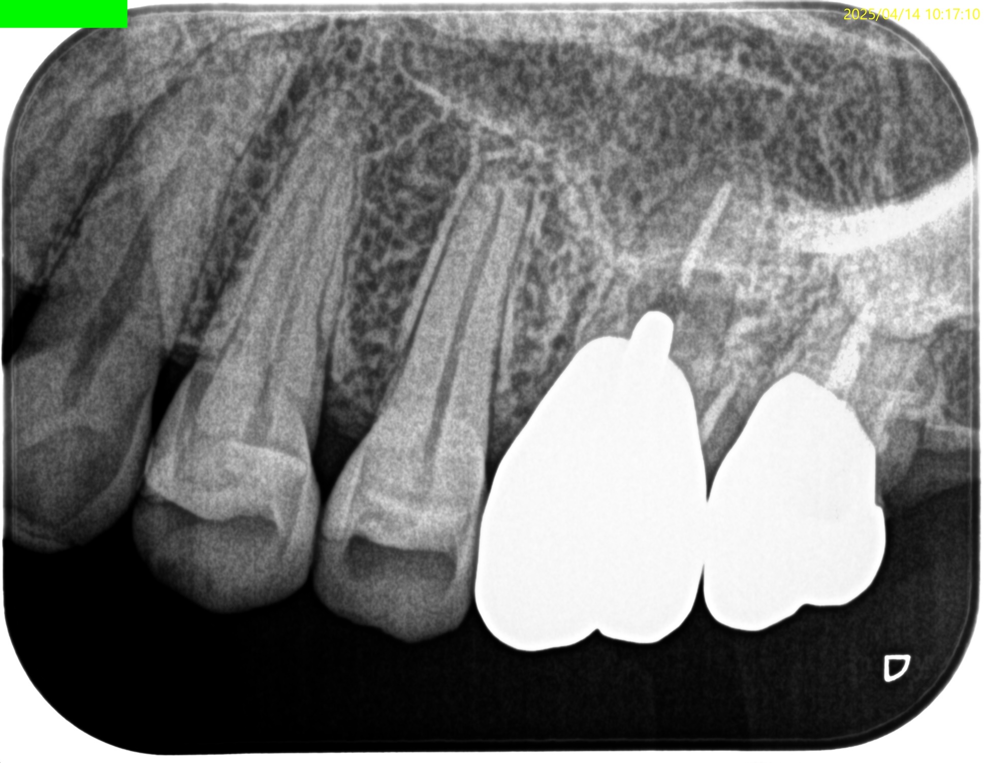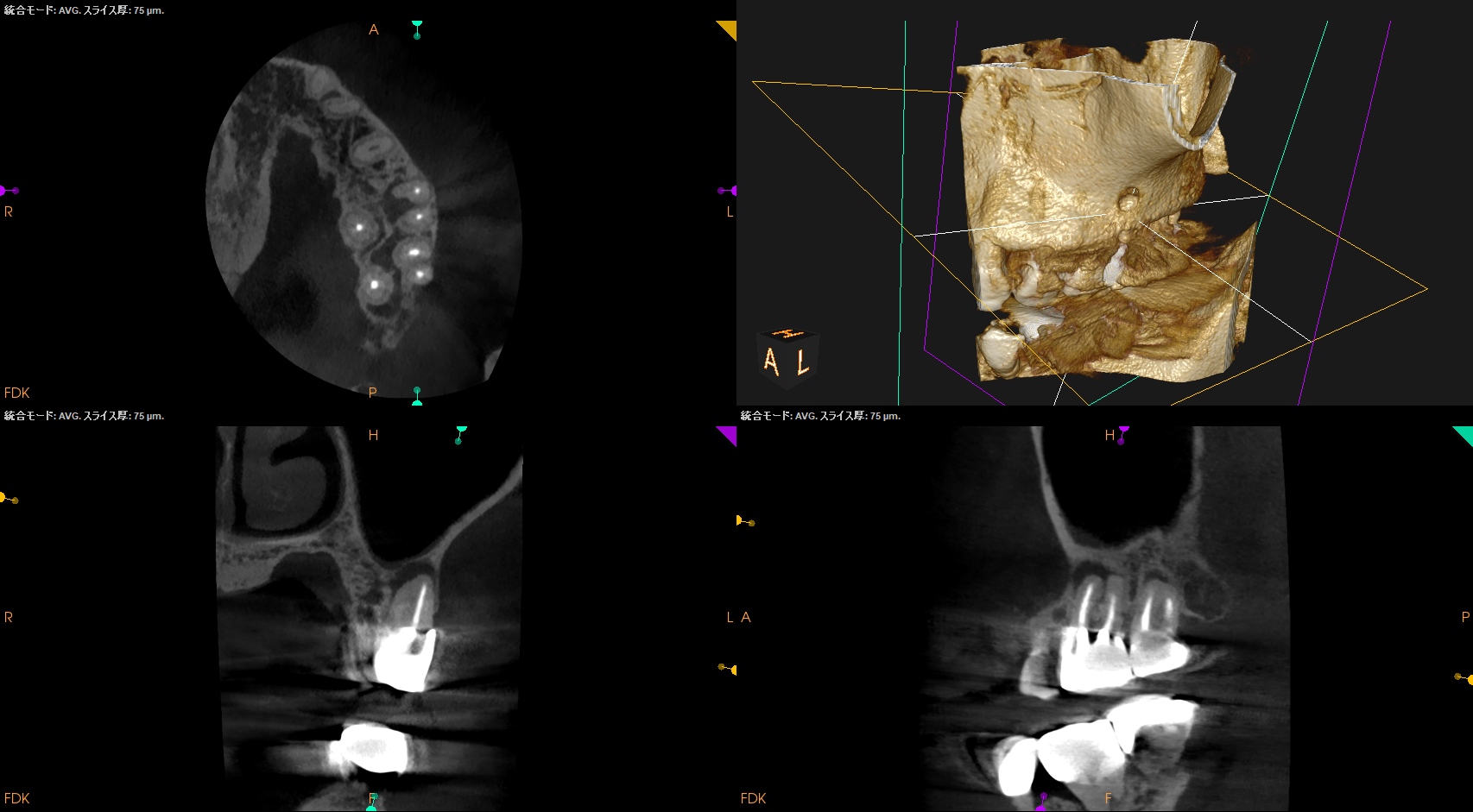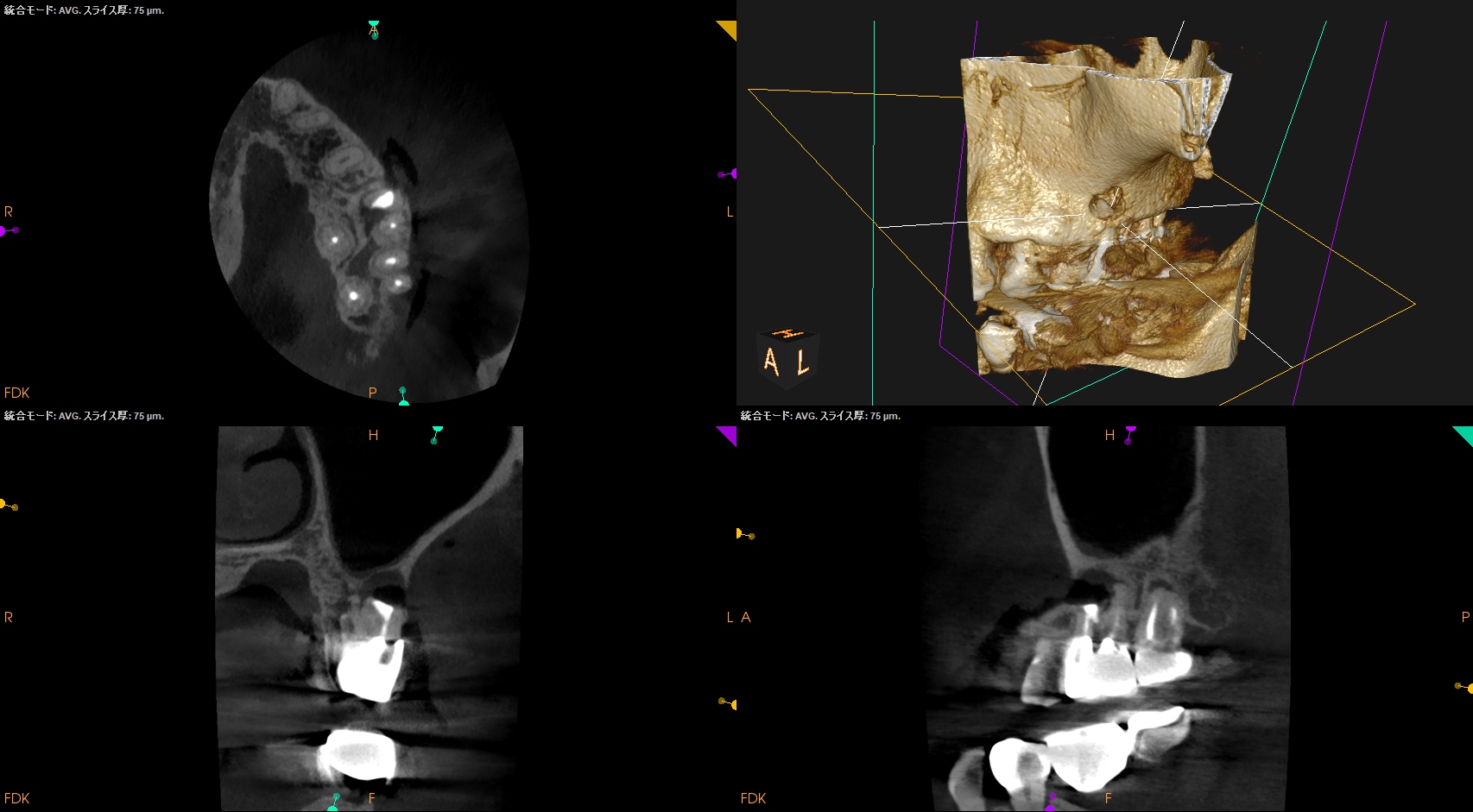 また、Sinus tractが根尖孔外細菌感染の可能性もある。