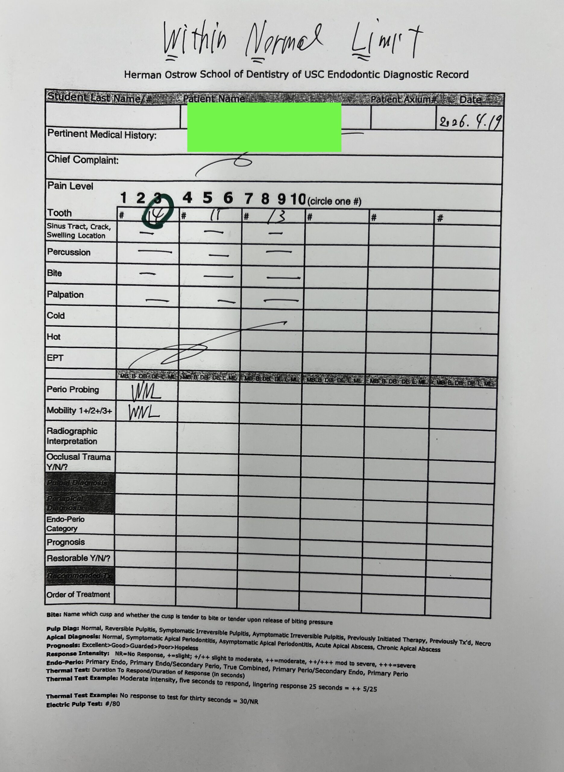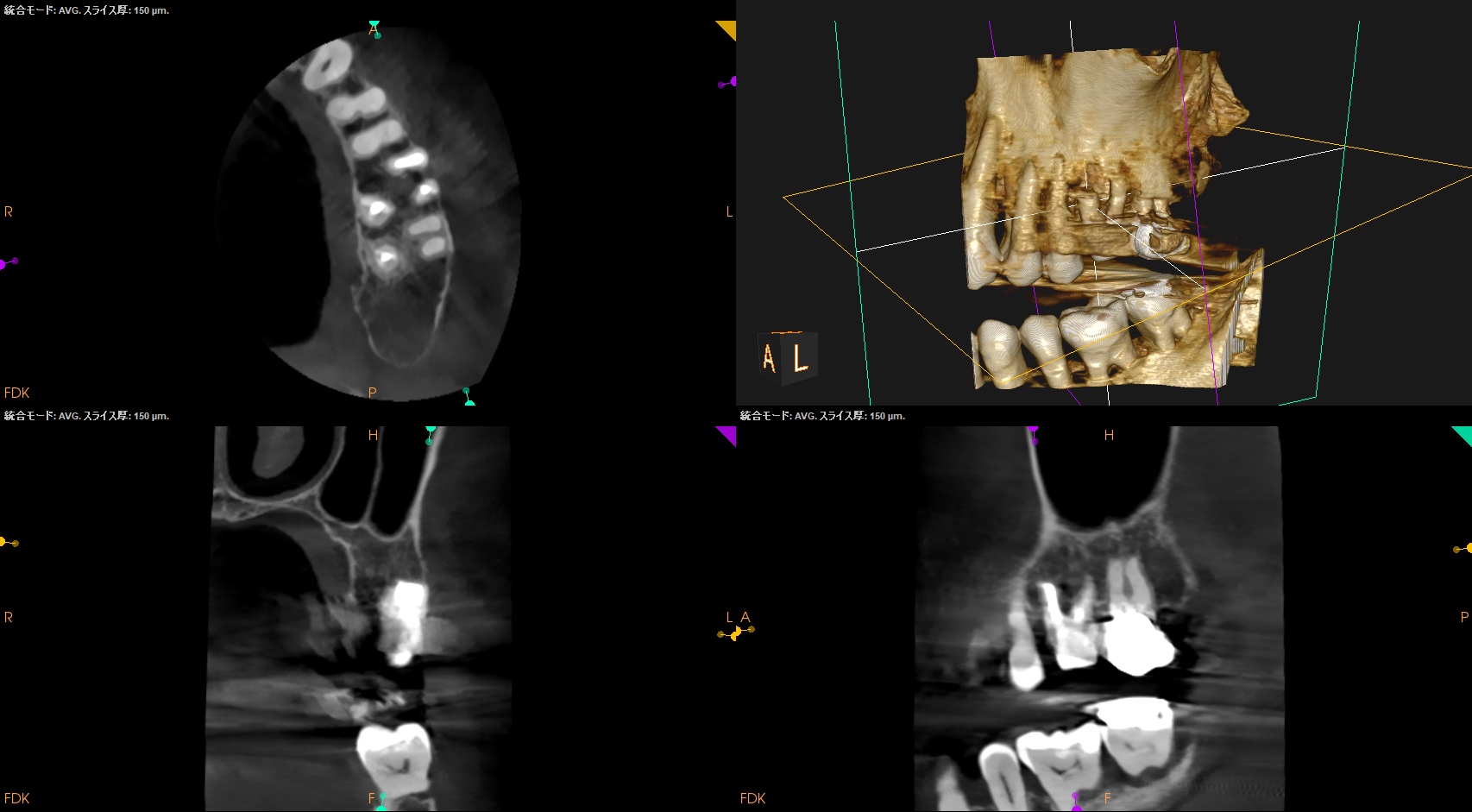大学4年か5年の時、再治療。その際、顔が腫れて、他大学の歯内療法科で再根管治療を完結。